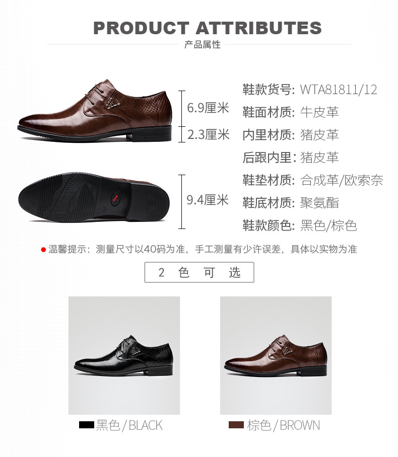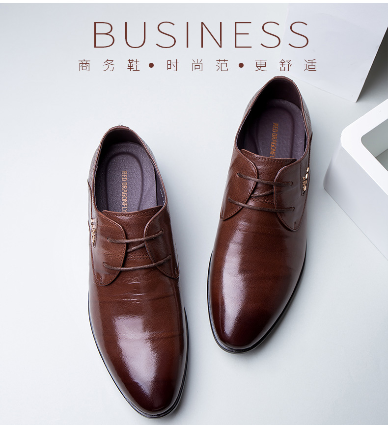 商品名称:红蜻蜓 男士单鞋春季新款真皮皮鞋男商务正装尖头婚礼正装男鞋
