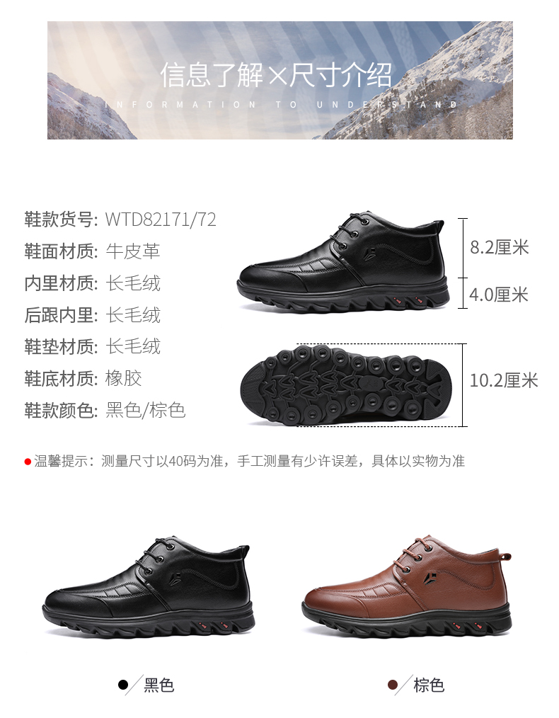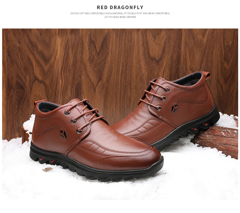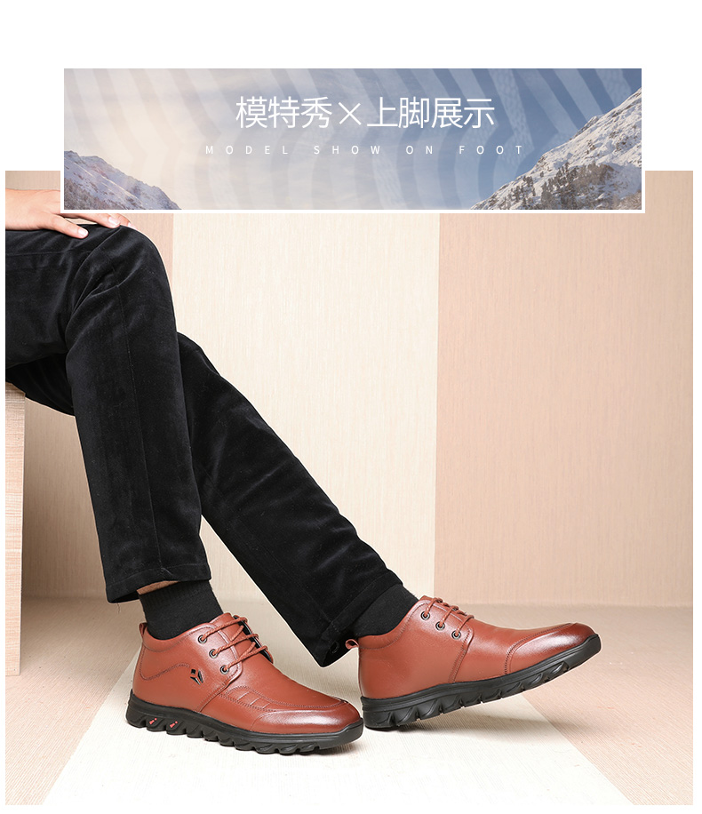 商品名称:红蜻蜓 冬季新品青年潮流高帮休闲鞋真皮保暖男棉鞋冬皮鞋