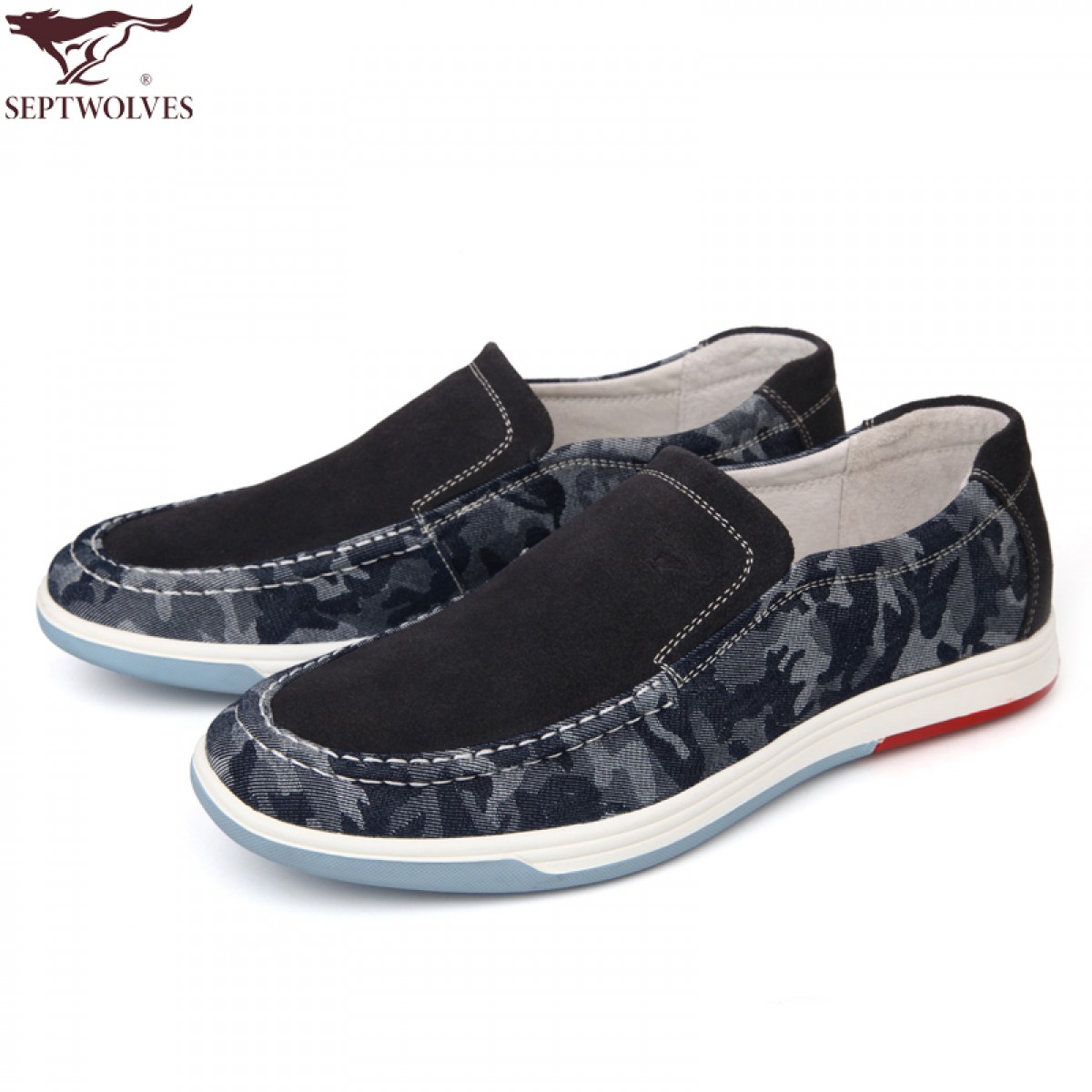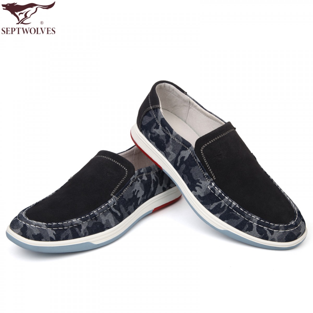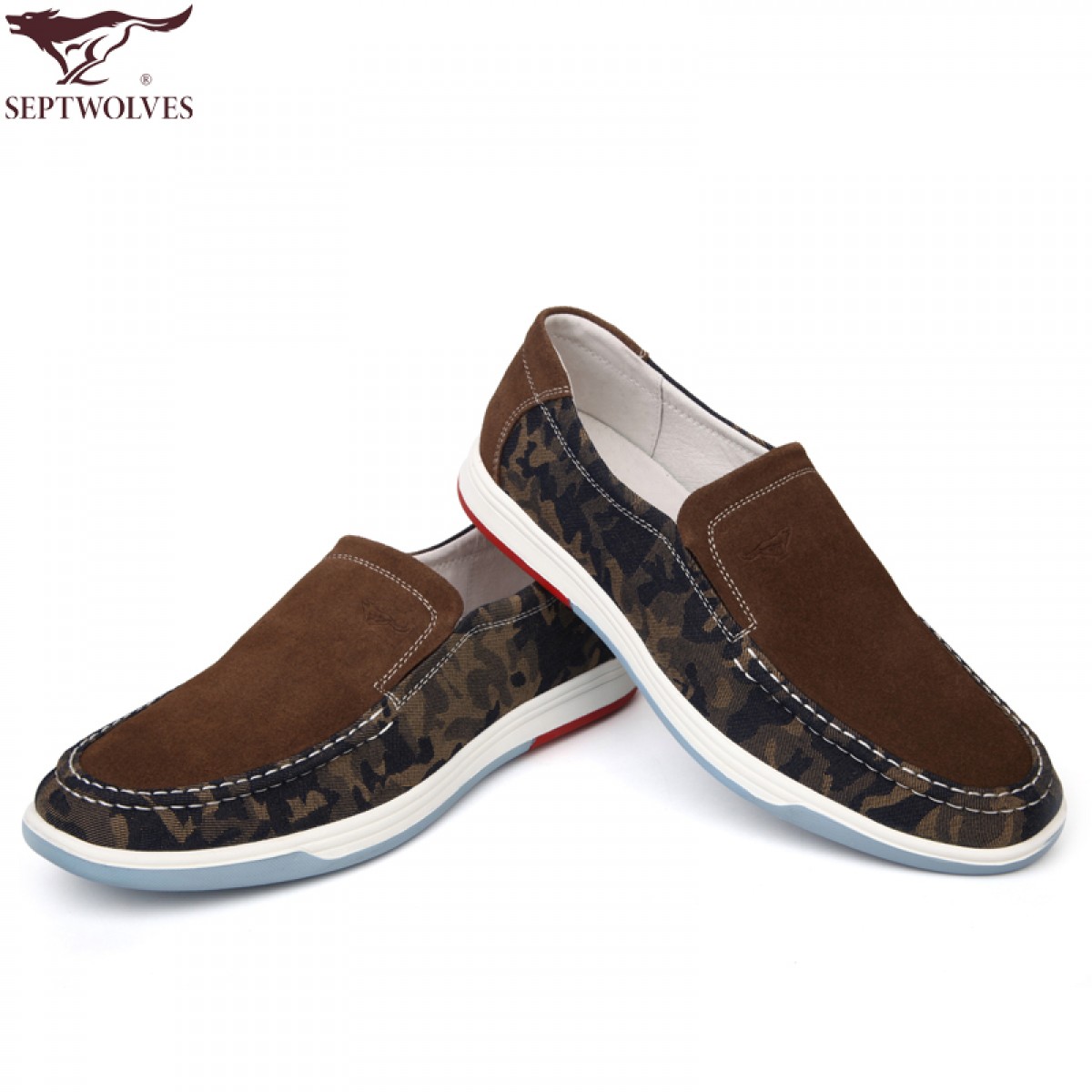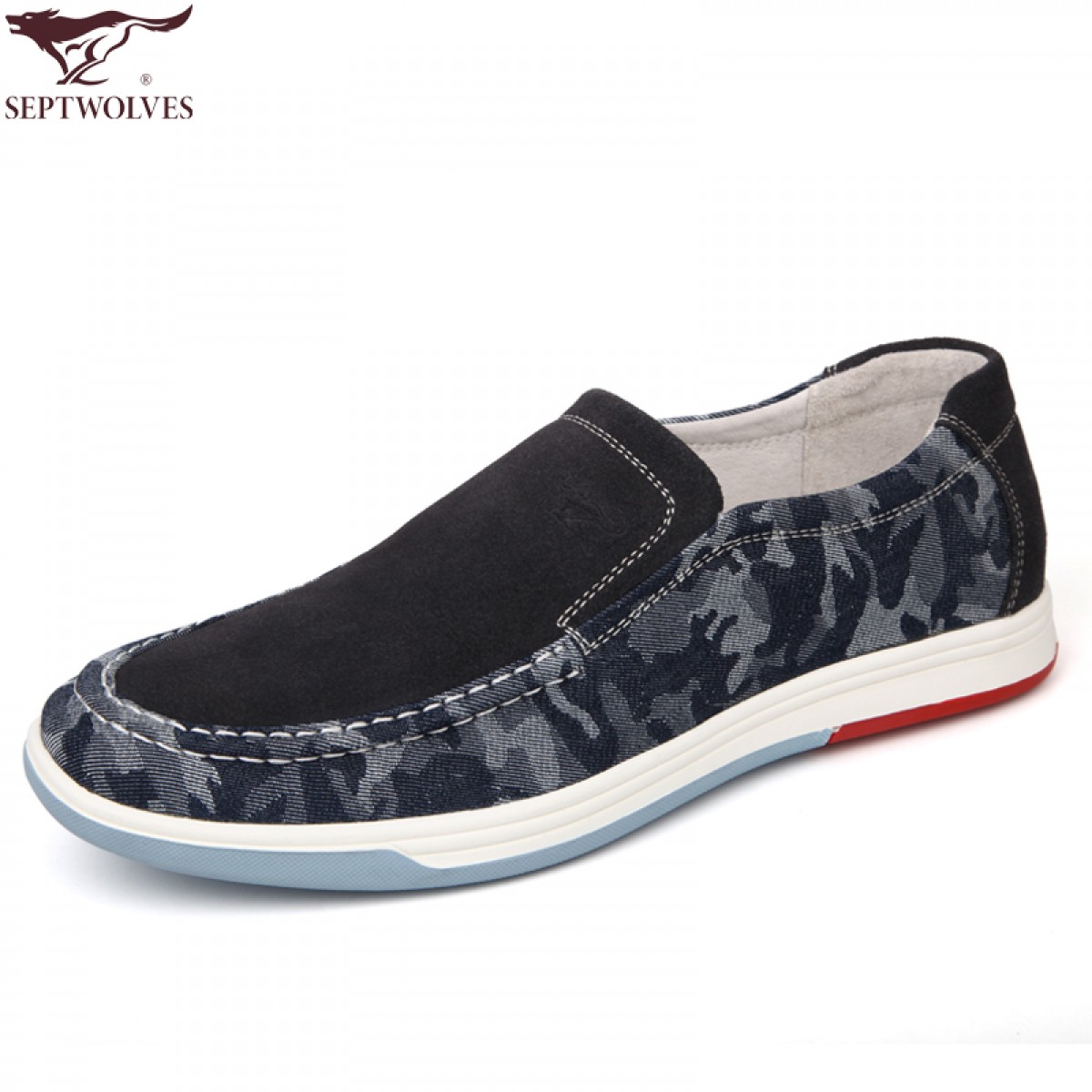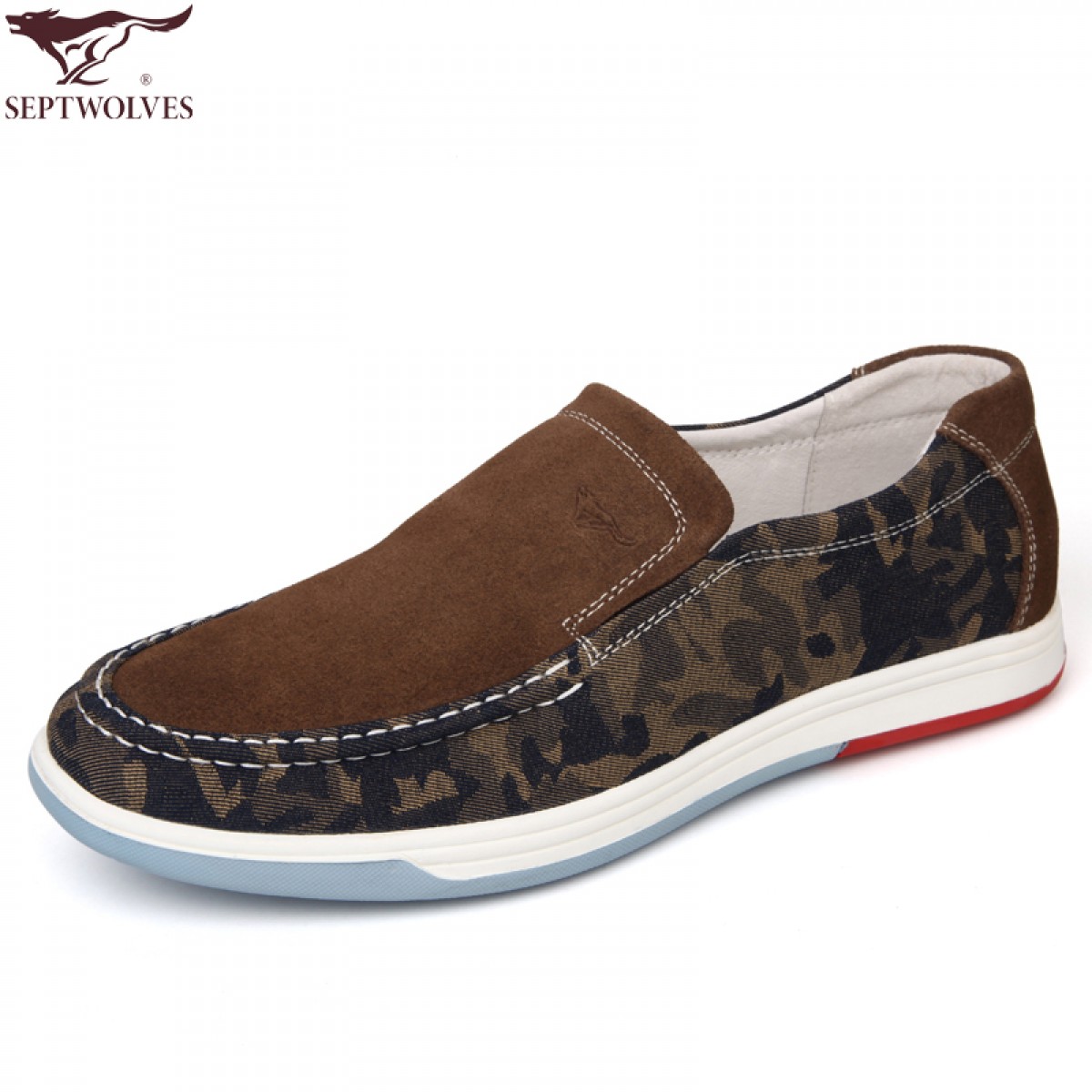 商品名称:七匹狼 男鞋牛皮拼接日常休闲潮流男士时尚白底真皮透气鞋子