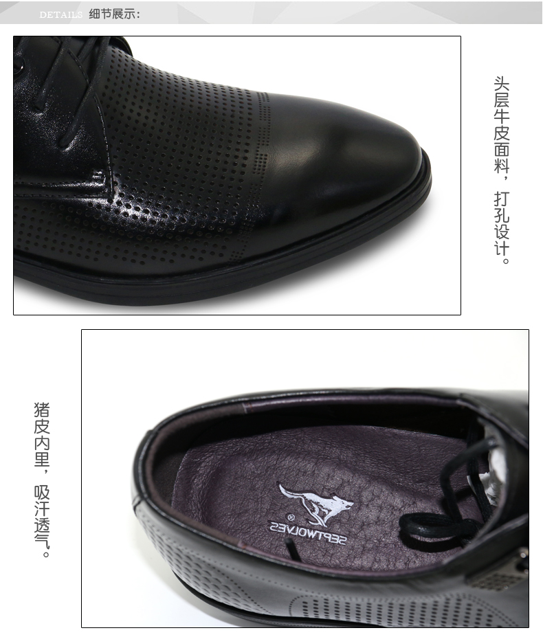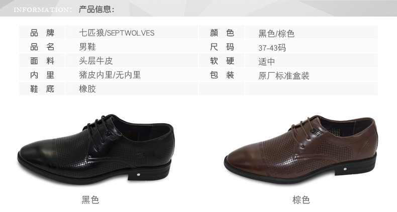 商品名称:七匹狼 男鞋新款头层牛皮镂空打孔男士商务正装真皮皮鞋子