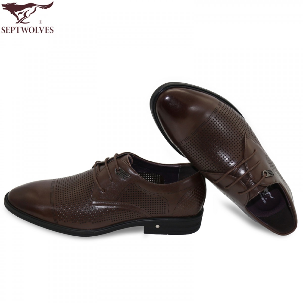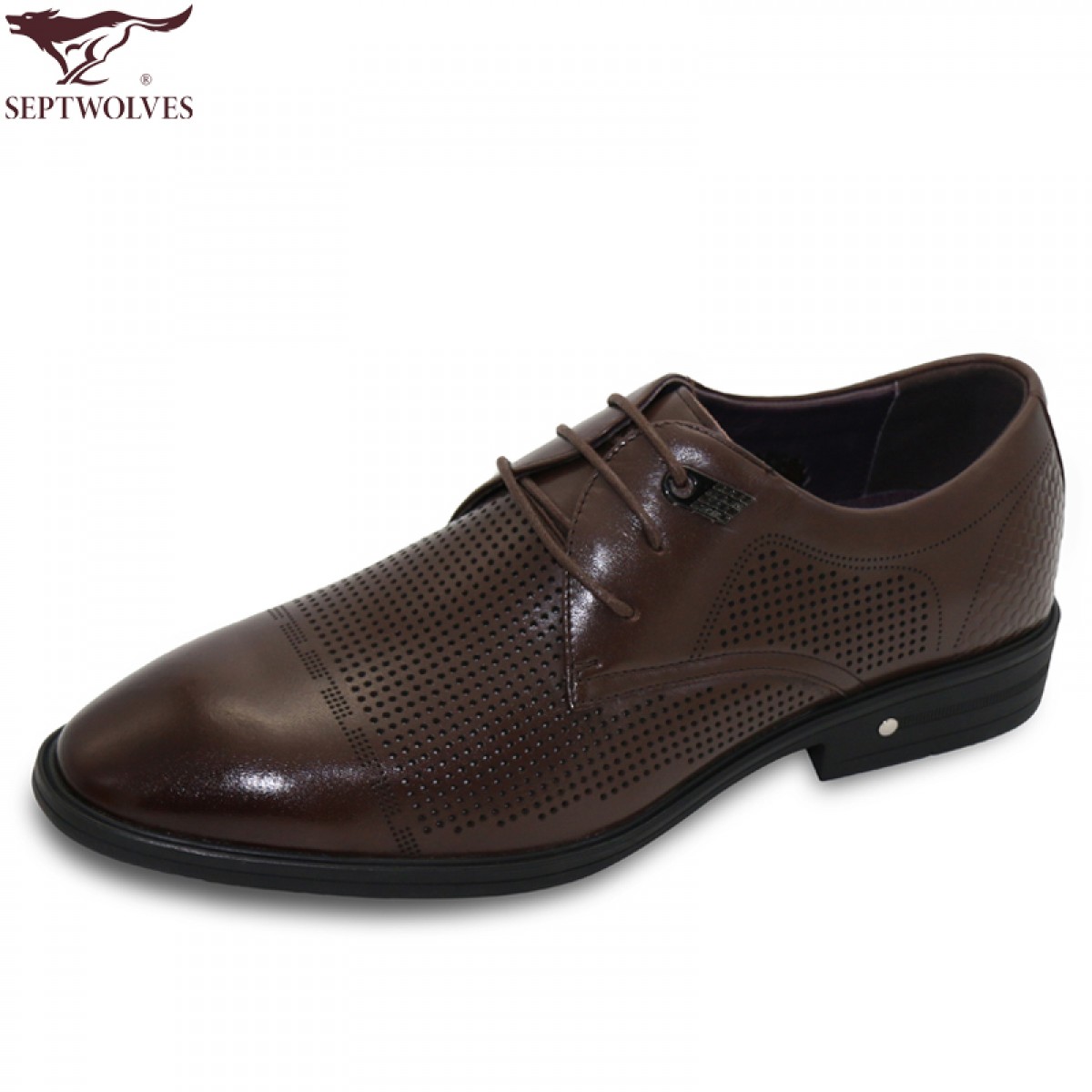 七匹狼 男鞋新款头层牛皮镂空打孔男士商务正装真皮皮鞋子