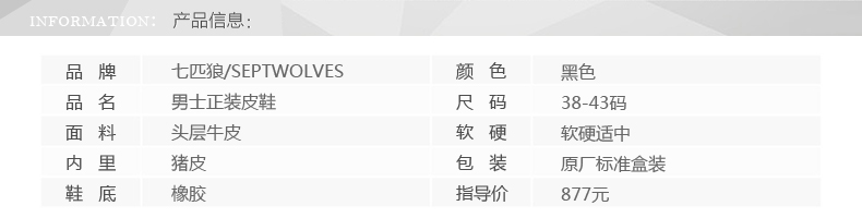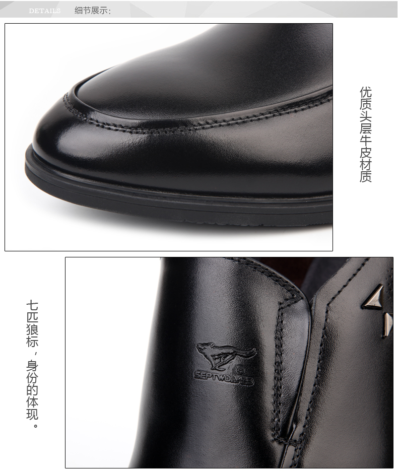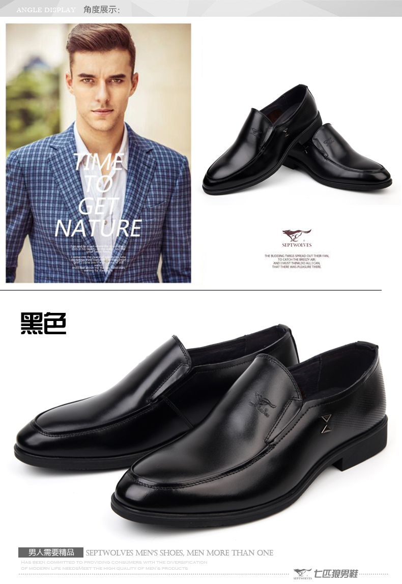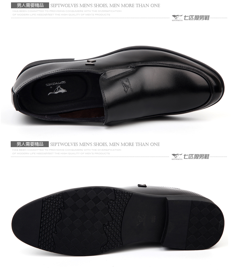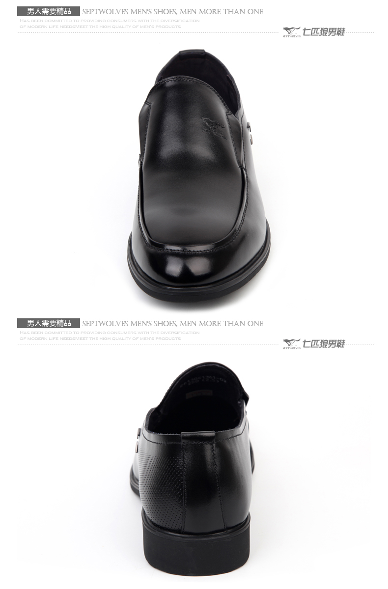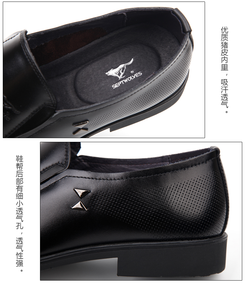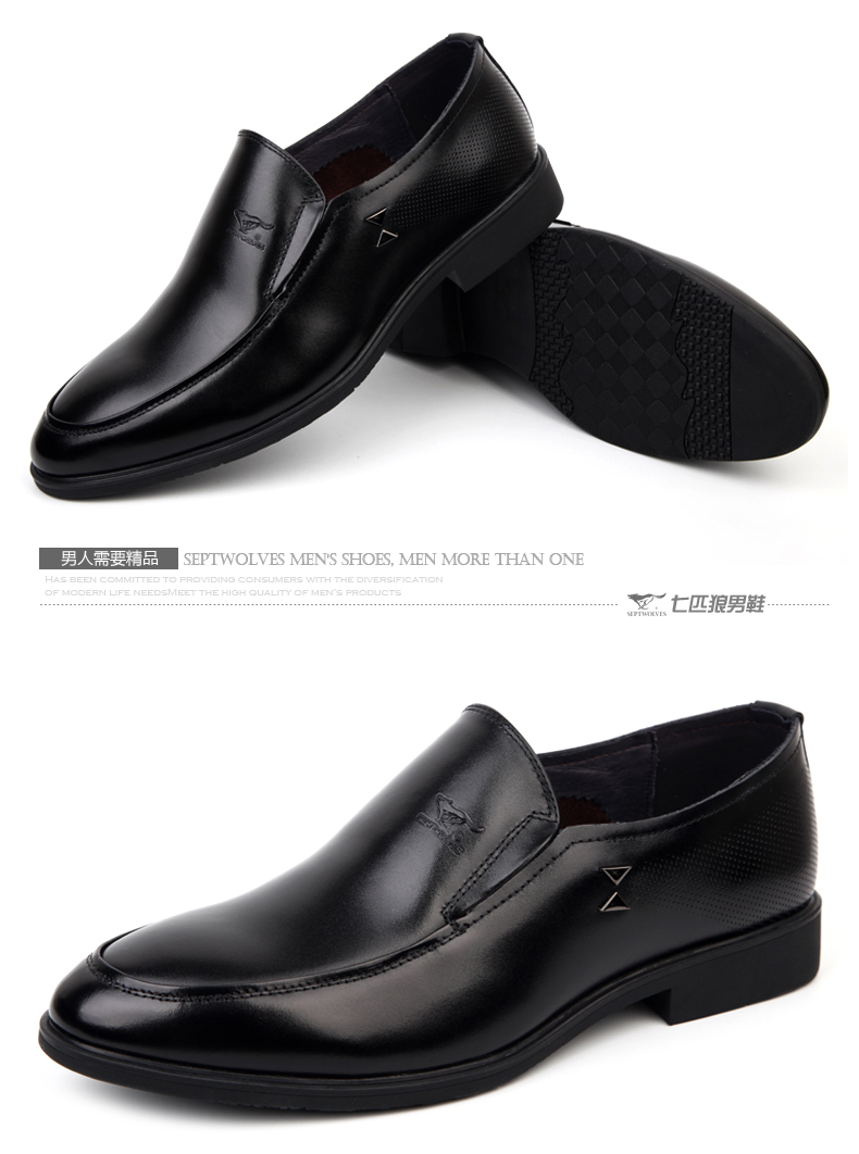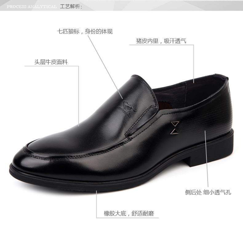 商品名称:七匹狼 皮鞋男士头层牛皮商务正装黑色透气真皮套脚日常男鞋子
