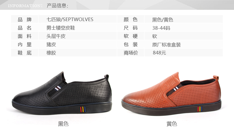 商品名称:七匹狼 男鞋新款头层牛皮男士夏季镂空透气真皮打孔皮凉鞋子
