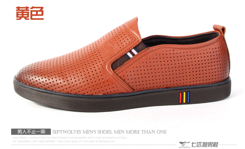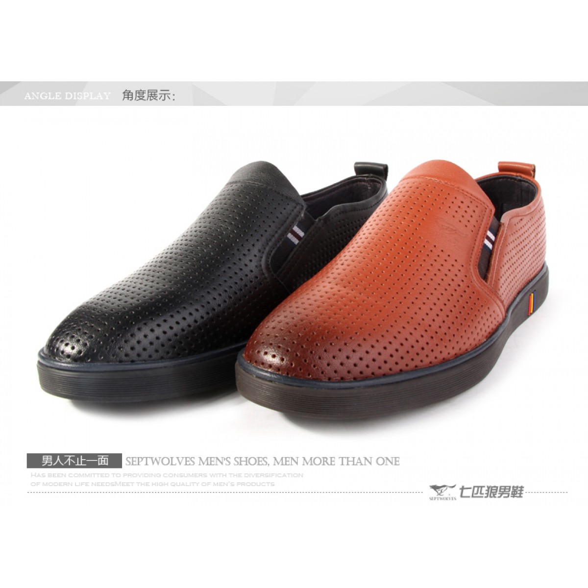 七匹狼 男鞋新款头层牛皮男士夏季镂空透气真皮打孔皮凉鞋子