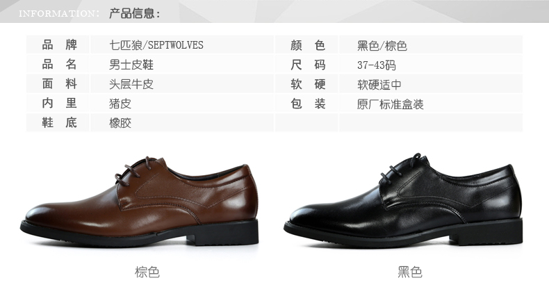 商品名称:七匹狼 皮鞋商务休闲鞋头层牛皮经典系带真皮男鞋青年男士结婚鞋子