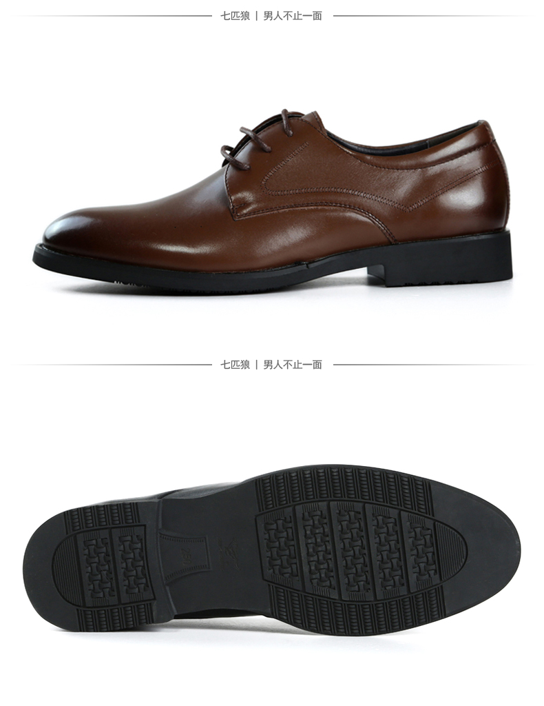 七匹狼 皮鞋商务休闲鞋头层牛皮经典系带真皮男鞋青年男士结婚鞋子