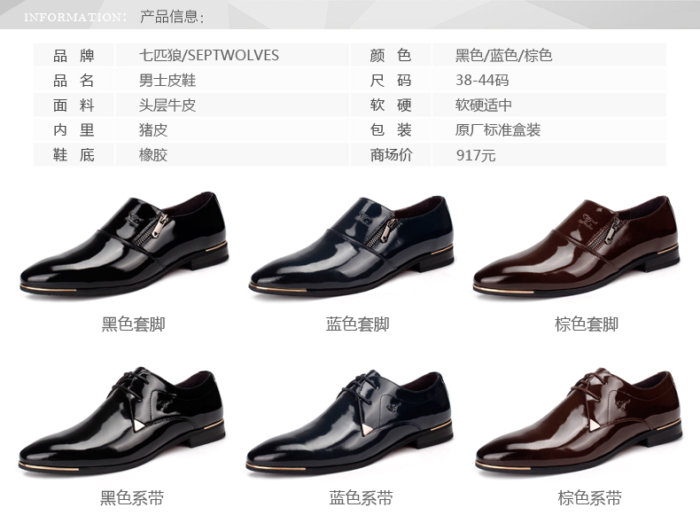 商品名称:七匹狼 男鞋新款时尚漆皮头层牛皮男士亮面真皮商务结婚宴会皮鞋子
