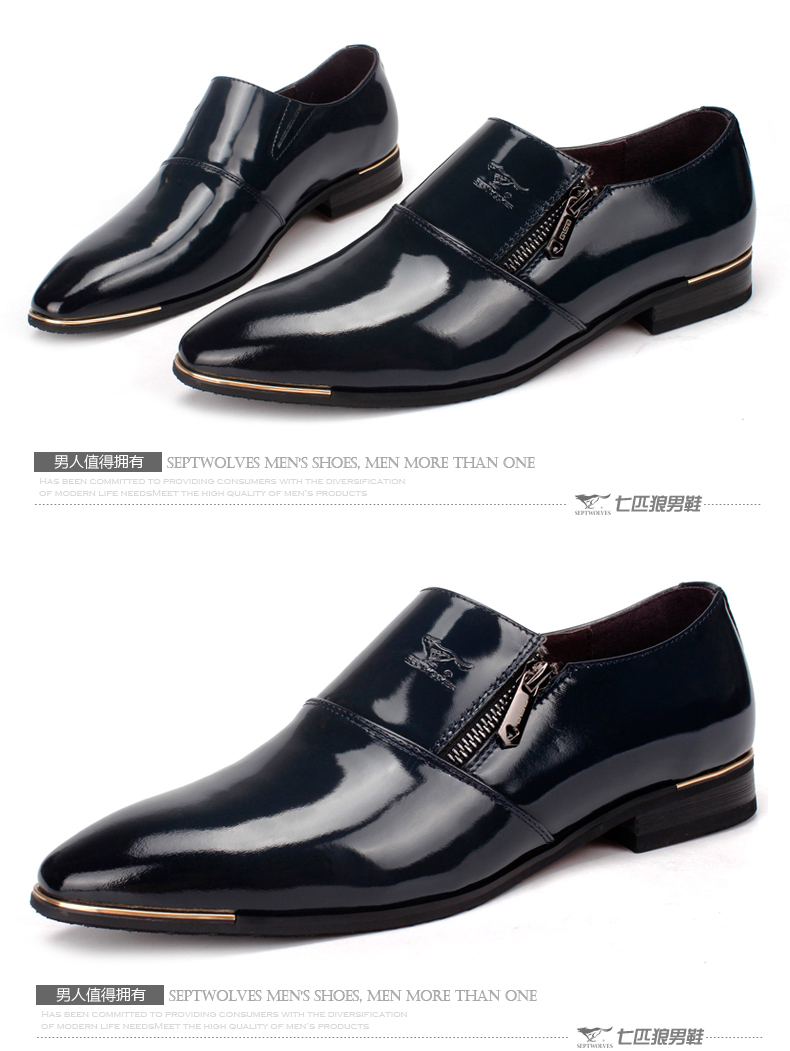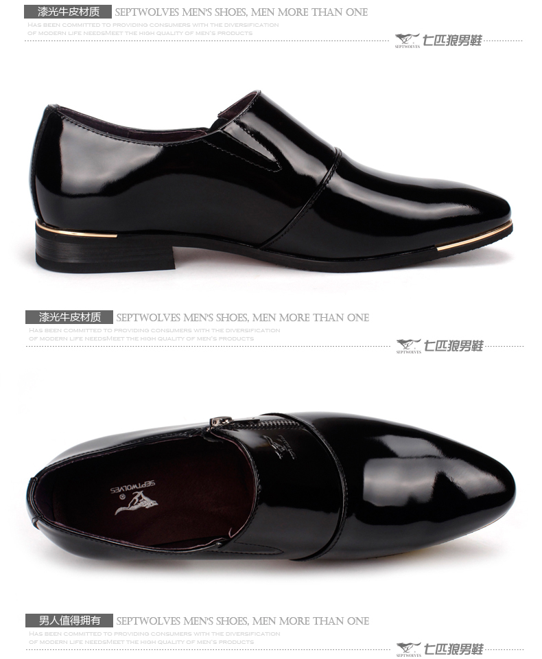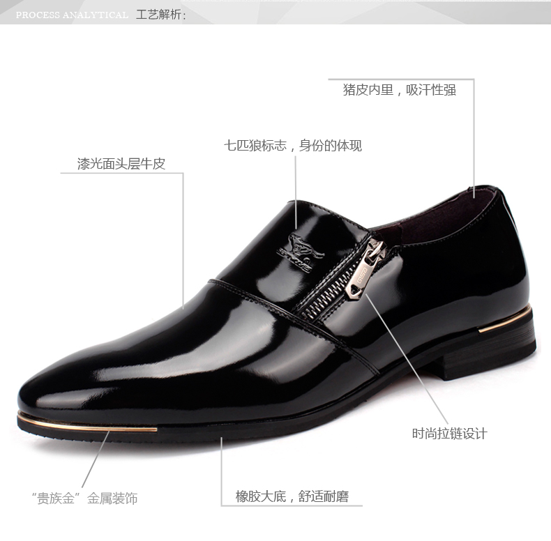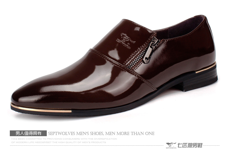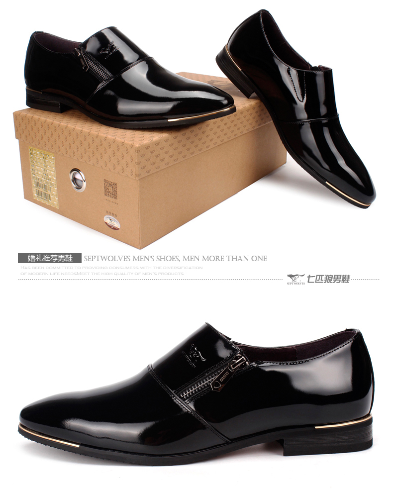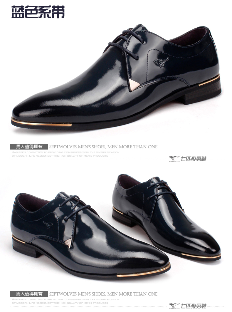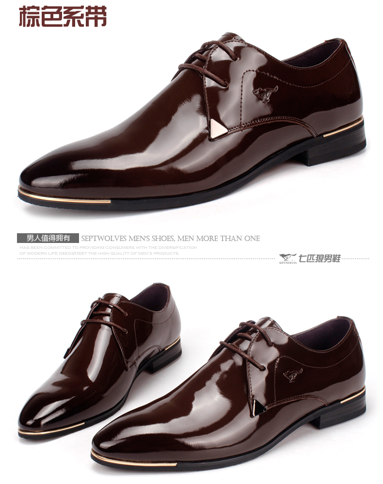 七匹狼 男鞋新款时尚漆皮头层牛皮男士亮面真皮商务结婚宴会皮鞋子