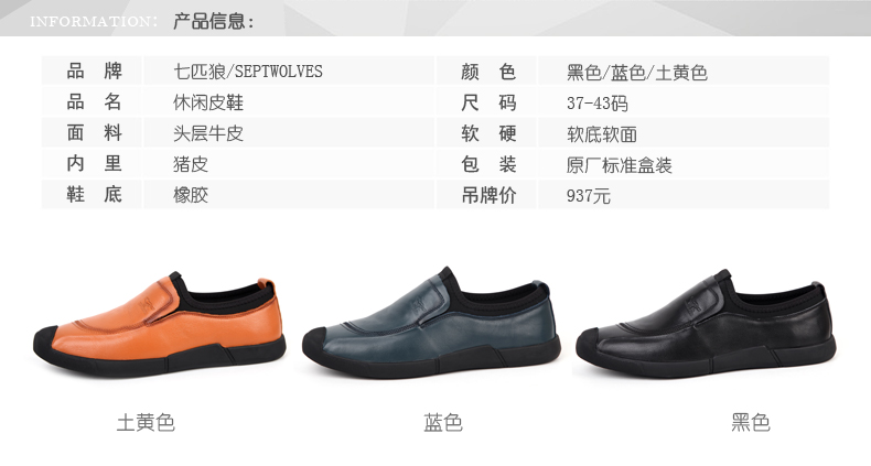 商品名称:七匹狼 新品男鞋头层牛皮男士休闲时尚耐磨软底男士皮鞋子