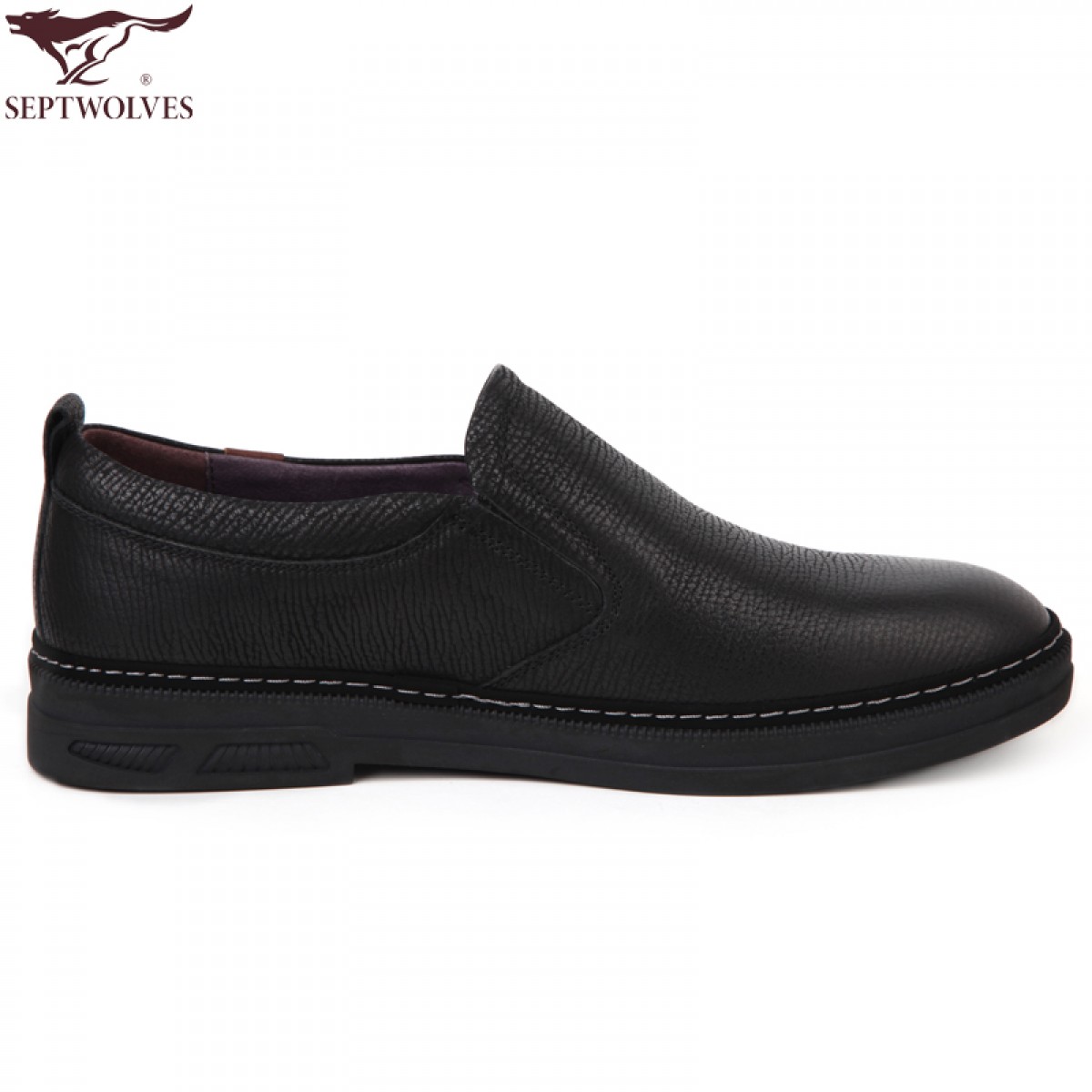 七匹狼 男鞋新款头层牛皮软底软面套脚时尚商务休闲男士皮鞋子