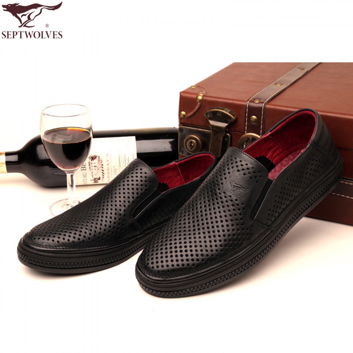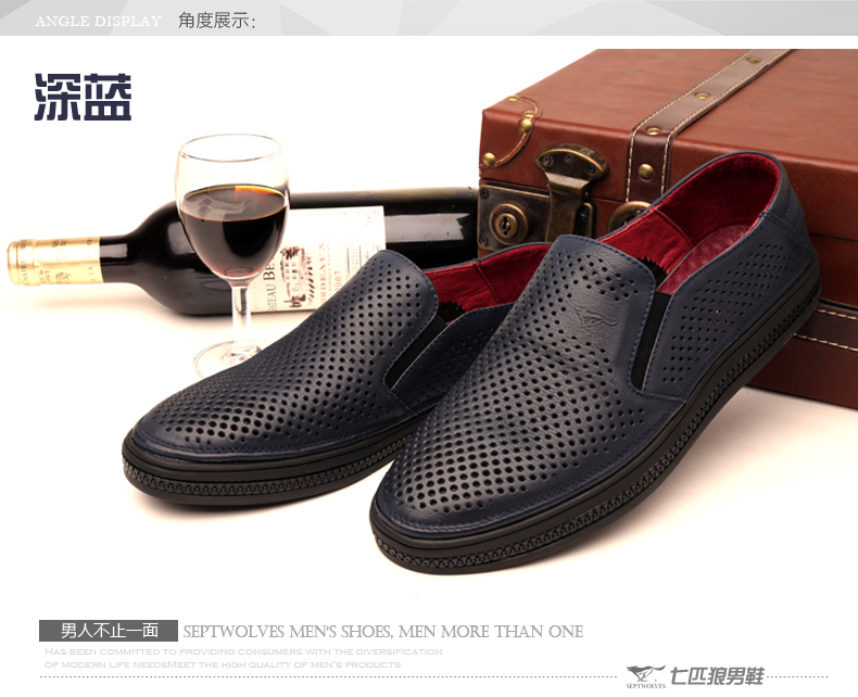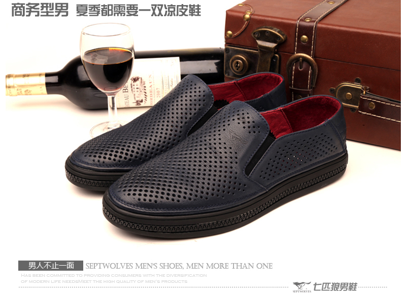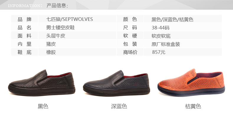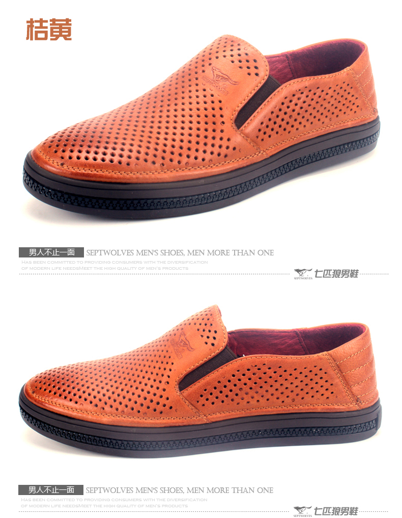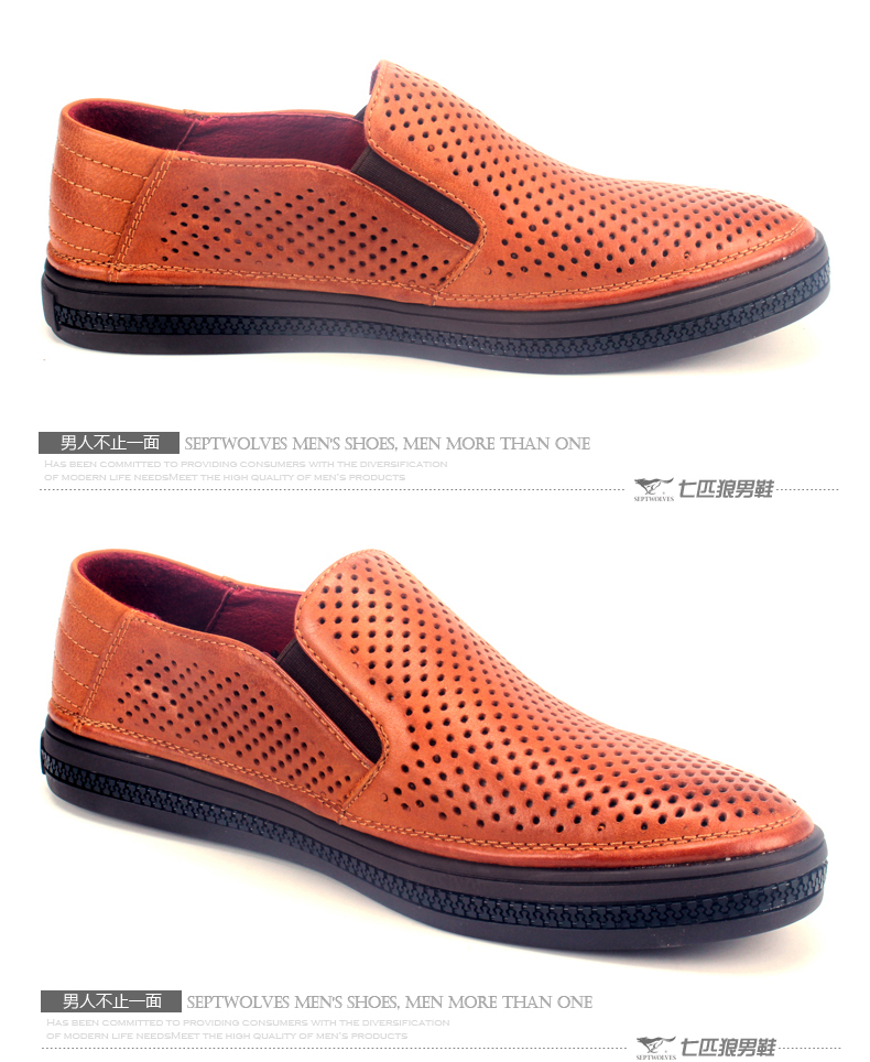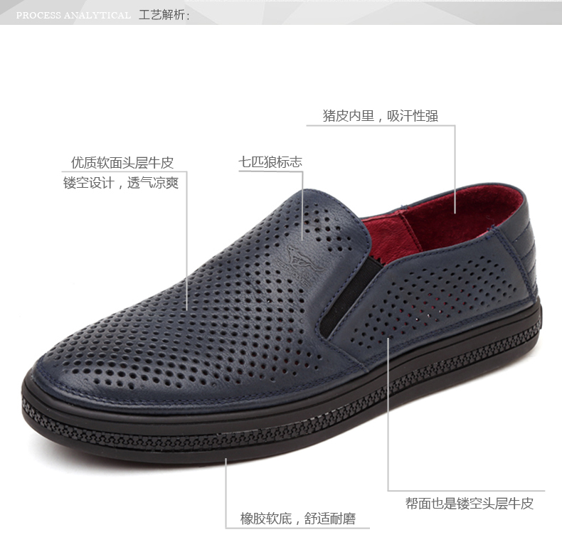 商品名称:七匹狼 皮凉鞋新款夏季打孔头层牛皮透气男士真皮男鞋镂空皮鞋子