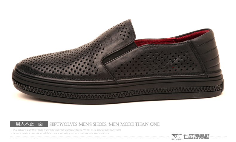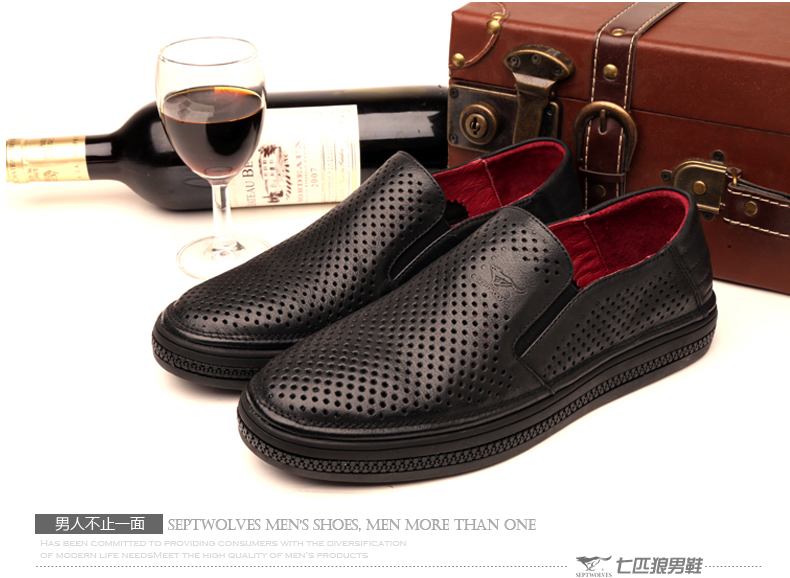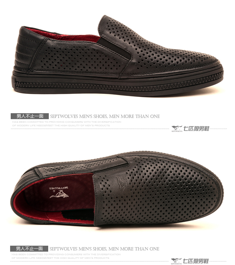 七匹狼 皮凉鞋新款夏季打孔头层牛皮透气男士真皮男鞋镂空皮鞋子