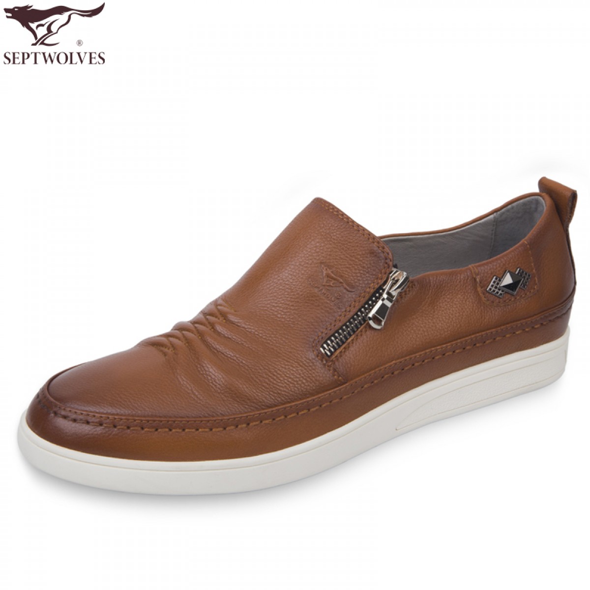 七匹狼 男鞋头层牛皮时尚白底套脚防褶皱男士休闲真皮皮鞋