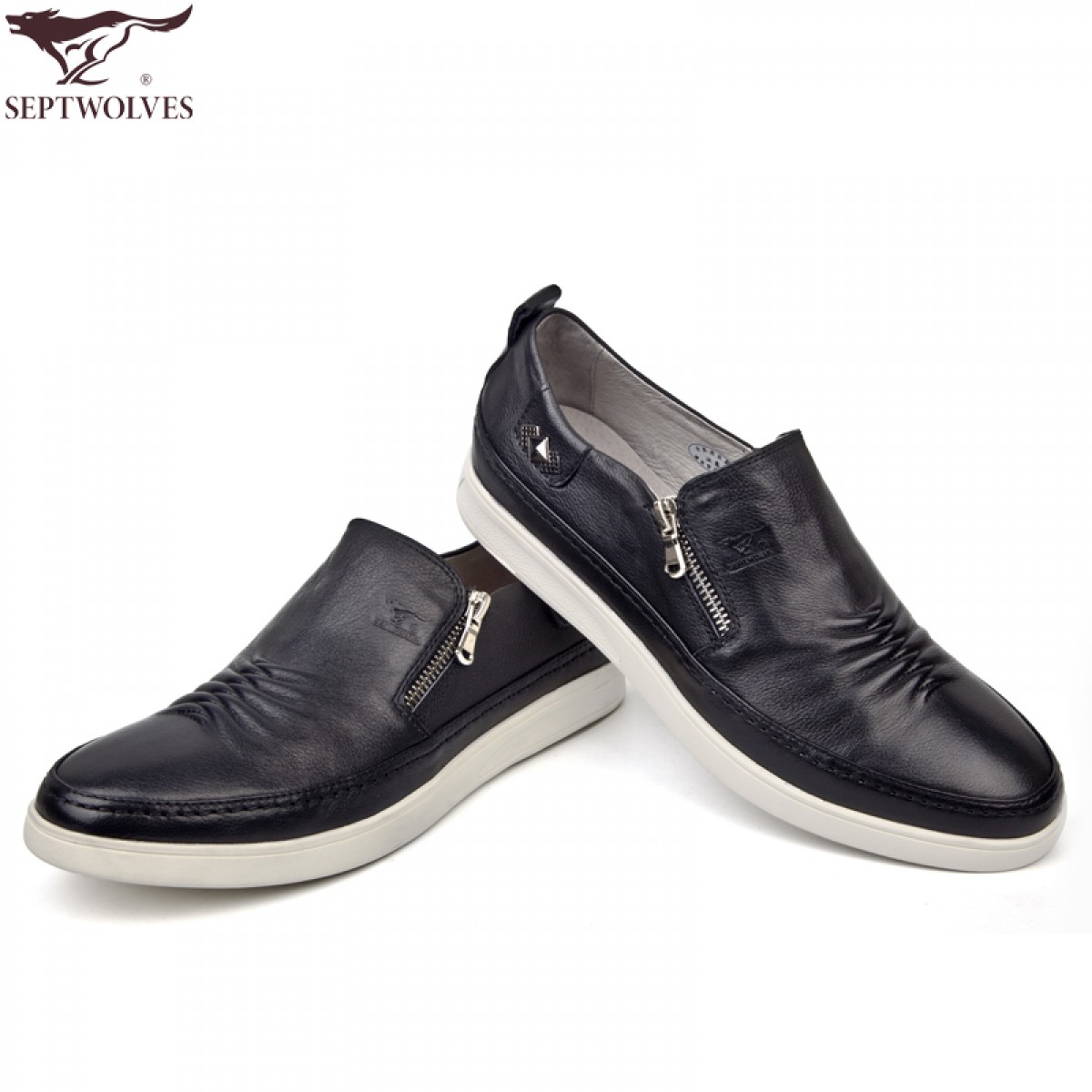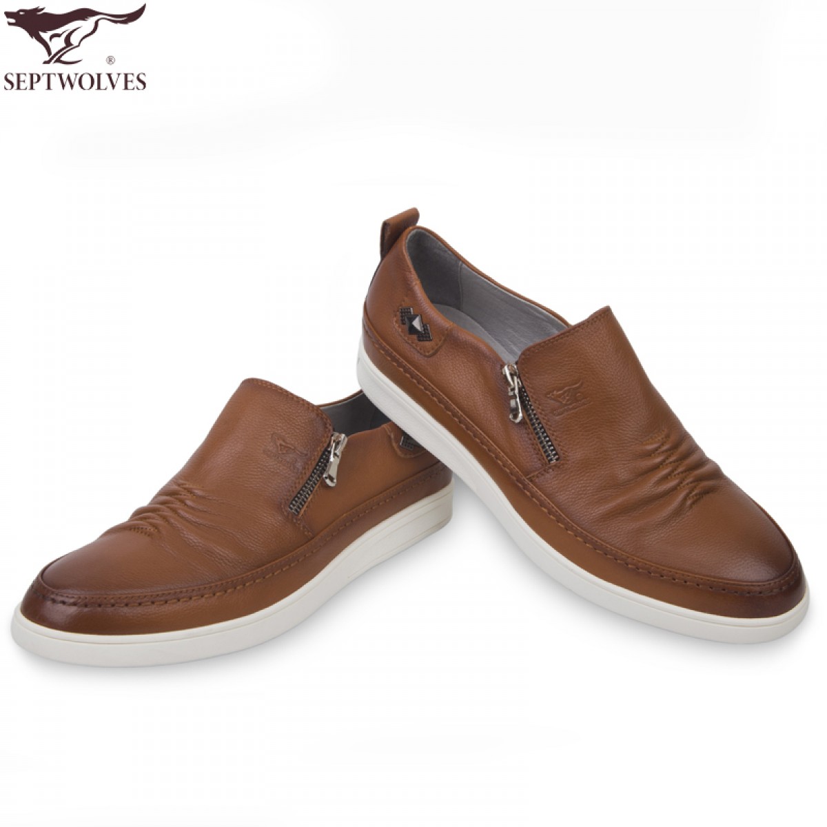 商品名称:七匹狼 男鞋头层牛皮时尚白底套脚防褶皱男士休闲真皮皮鞋