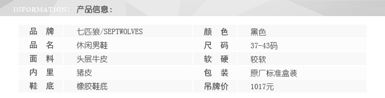 商品名称:七匹狼 男鞋新款头层牛皮真皮线缝男鞋时尚耐磨商务休闲皮鞋子