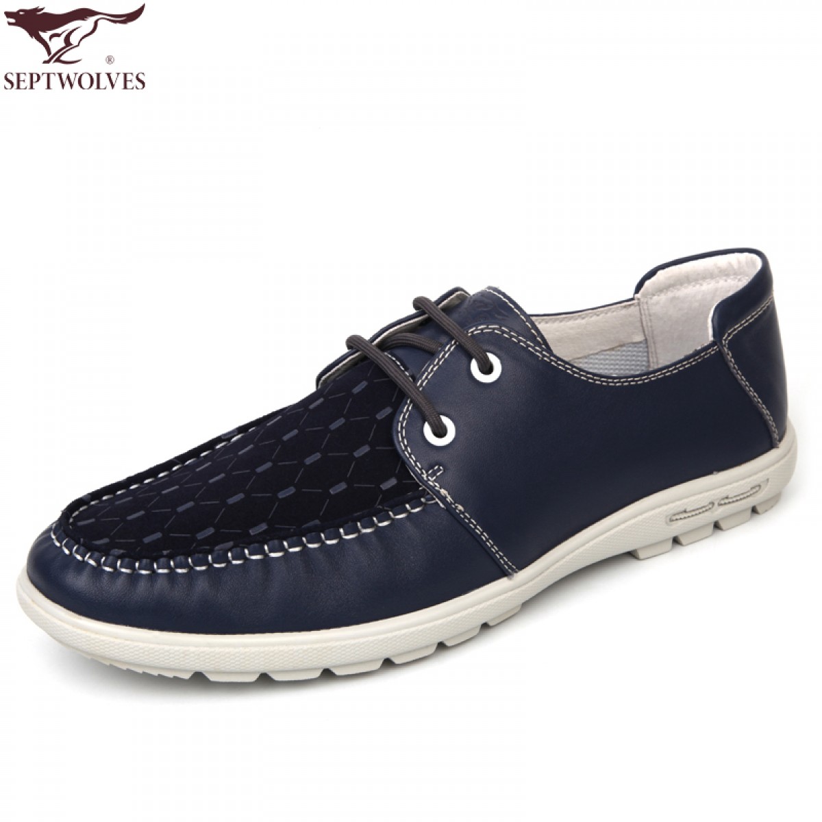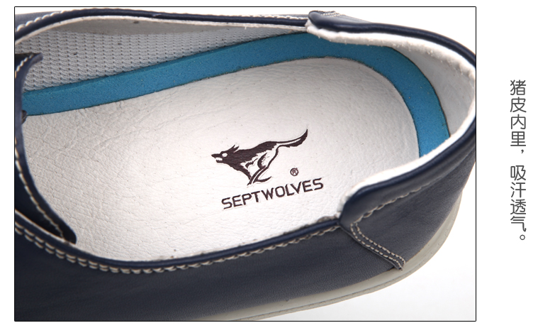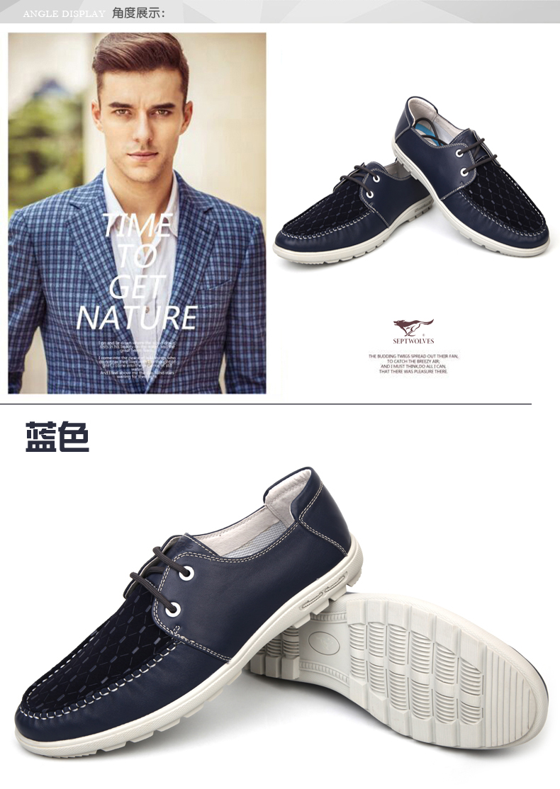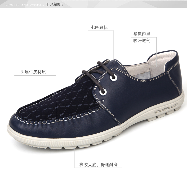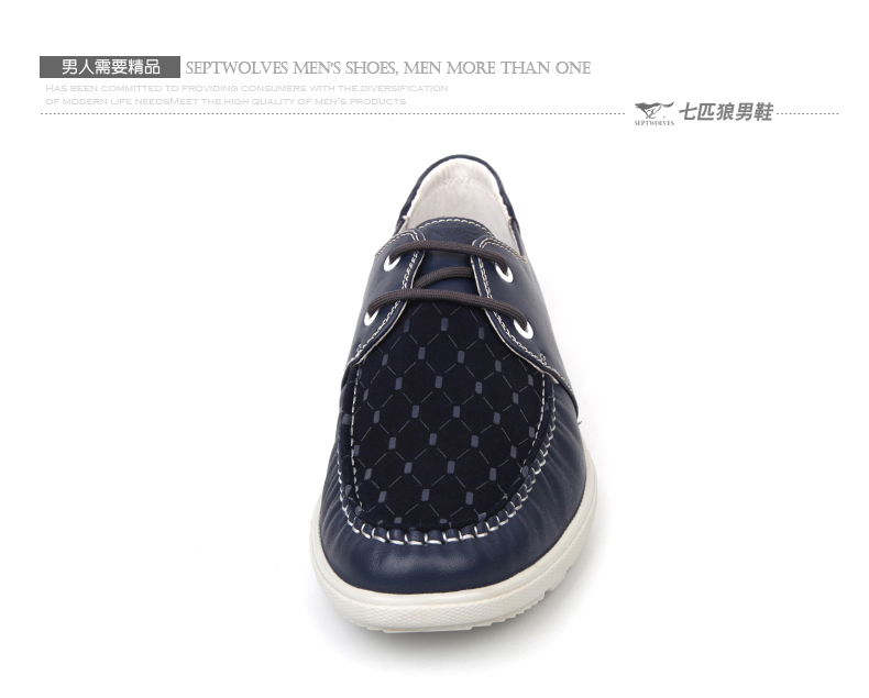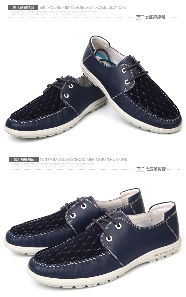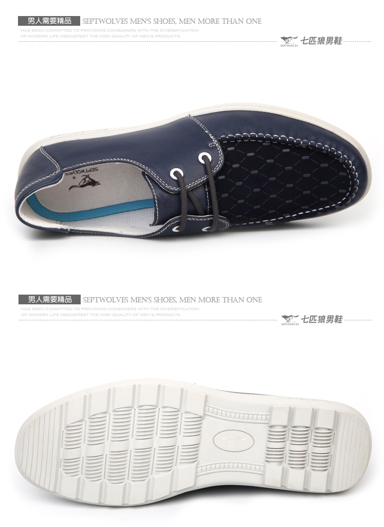 商品名称:七匹狼 男鞋头层牛皮拼接男士时尚白底休闲蓝色系带真皮皮鞋子