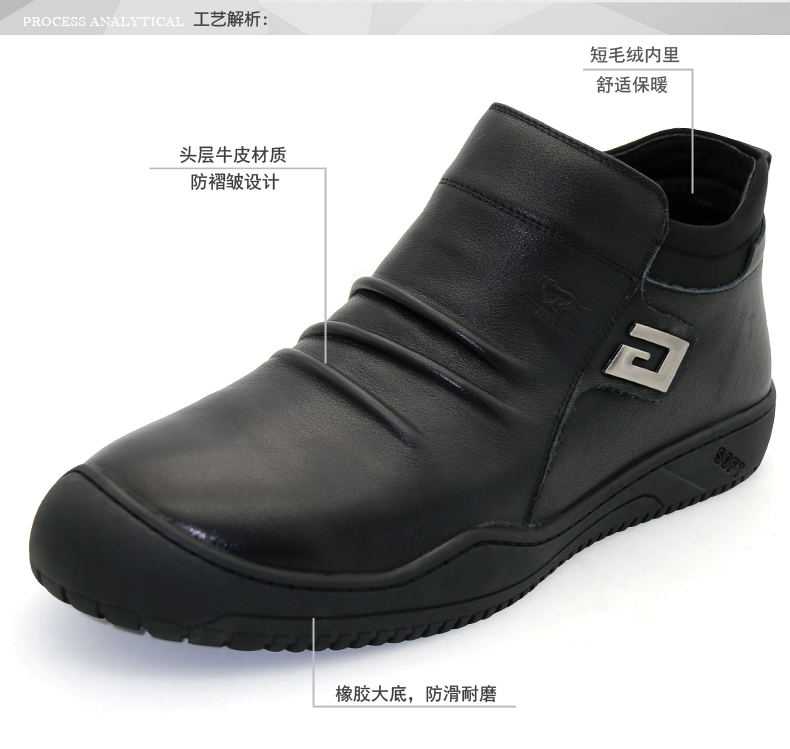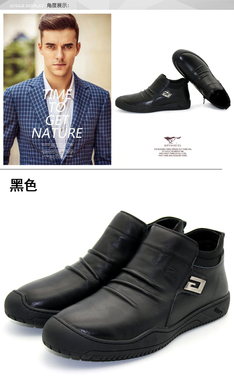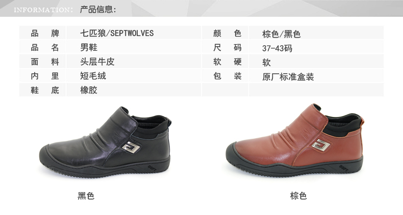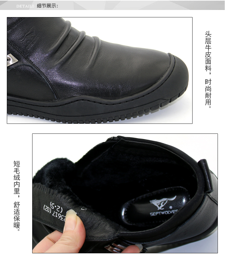 商品名称:七匹狼 棉鞋冬季头层牛皮男士真皮加绒保暖高帮真皮拉链毛皮鞋