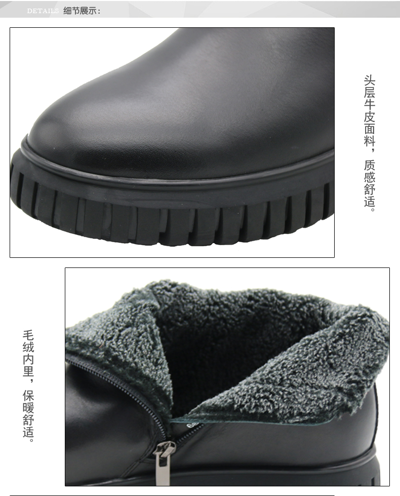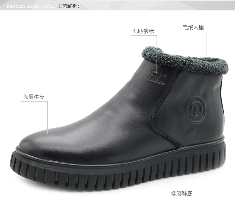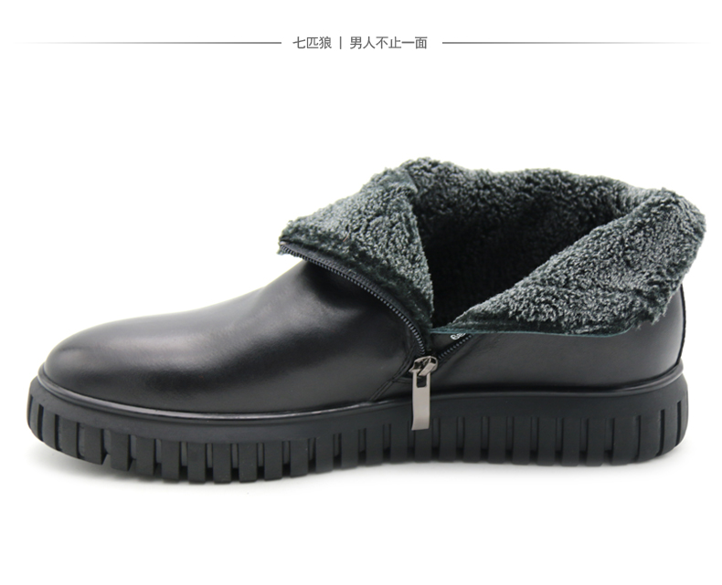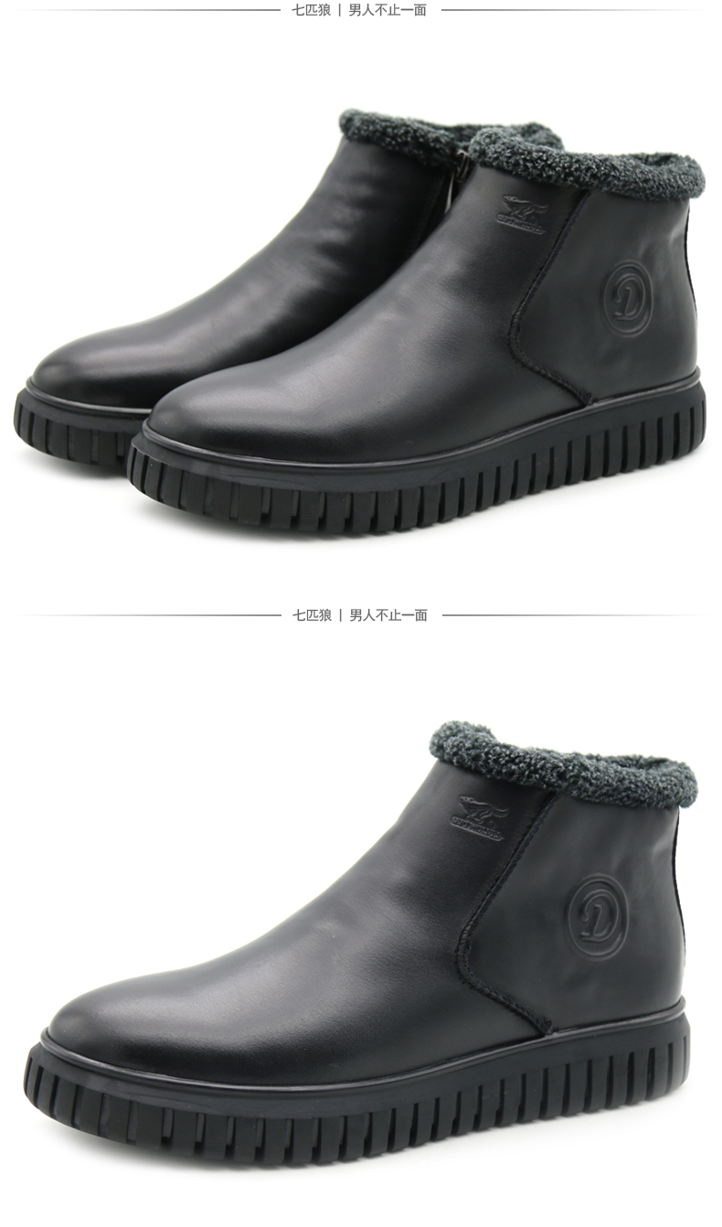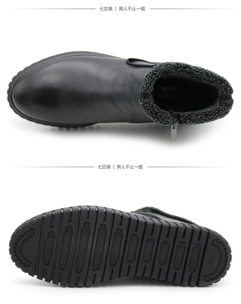 商品名称:七匹狼 男鞋新款冬季保暖头层牛皮毛绒内里拉链软底男士高帮鞋