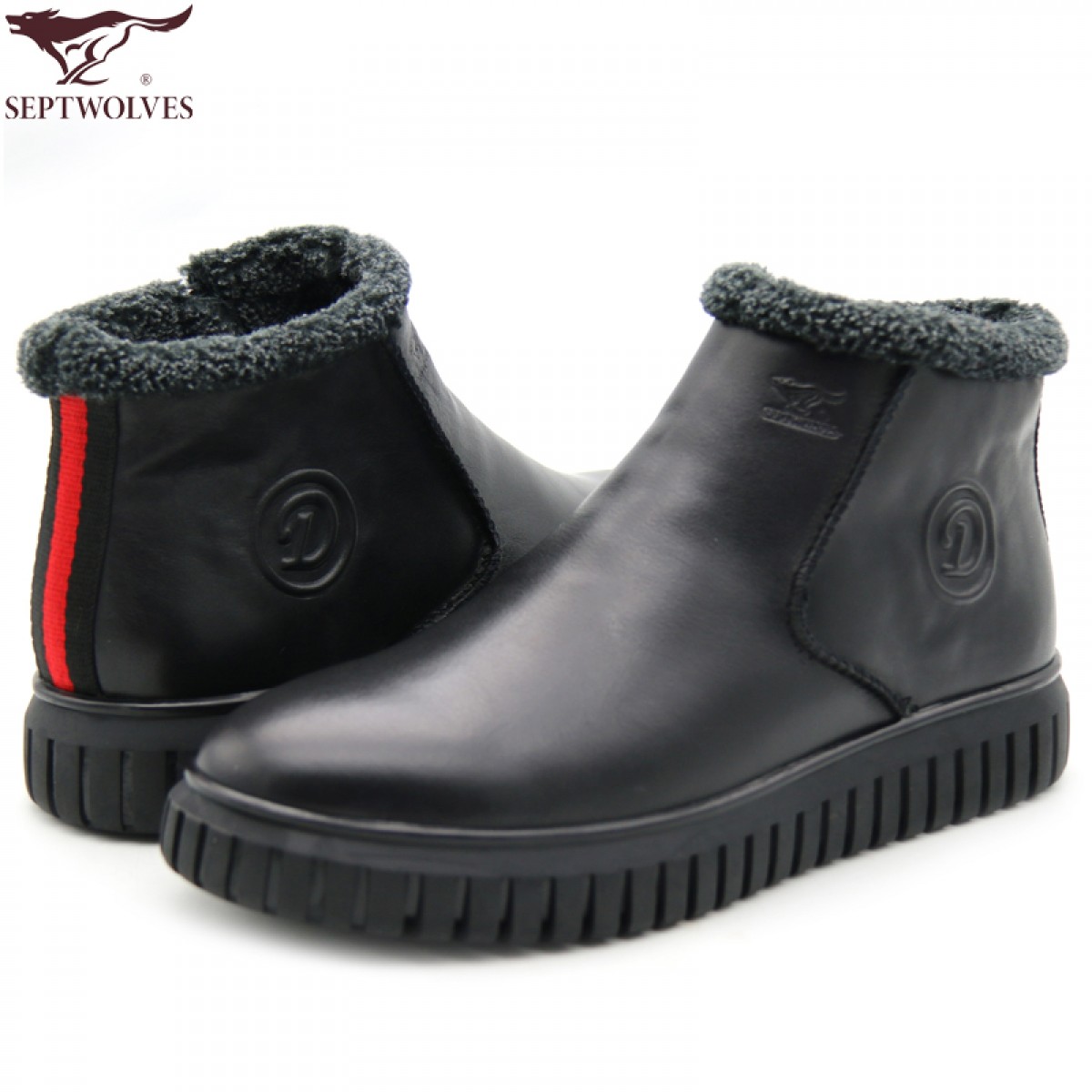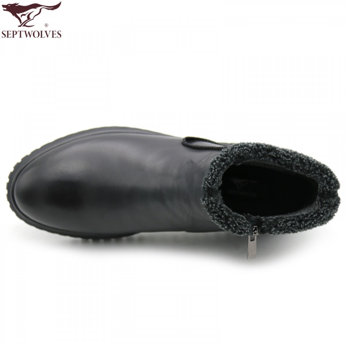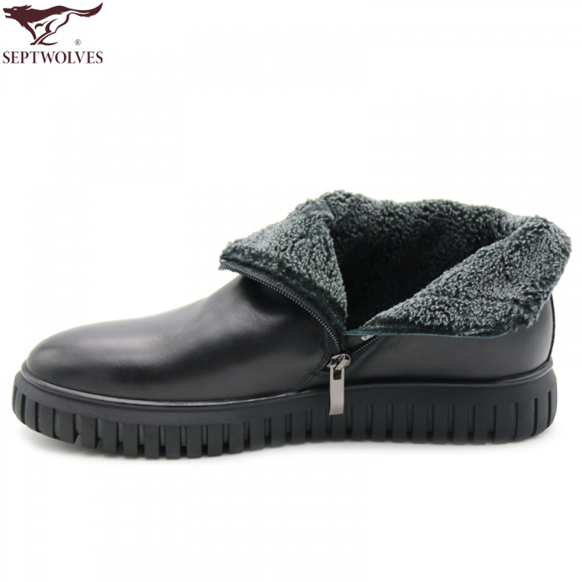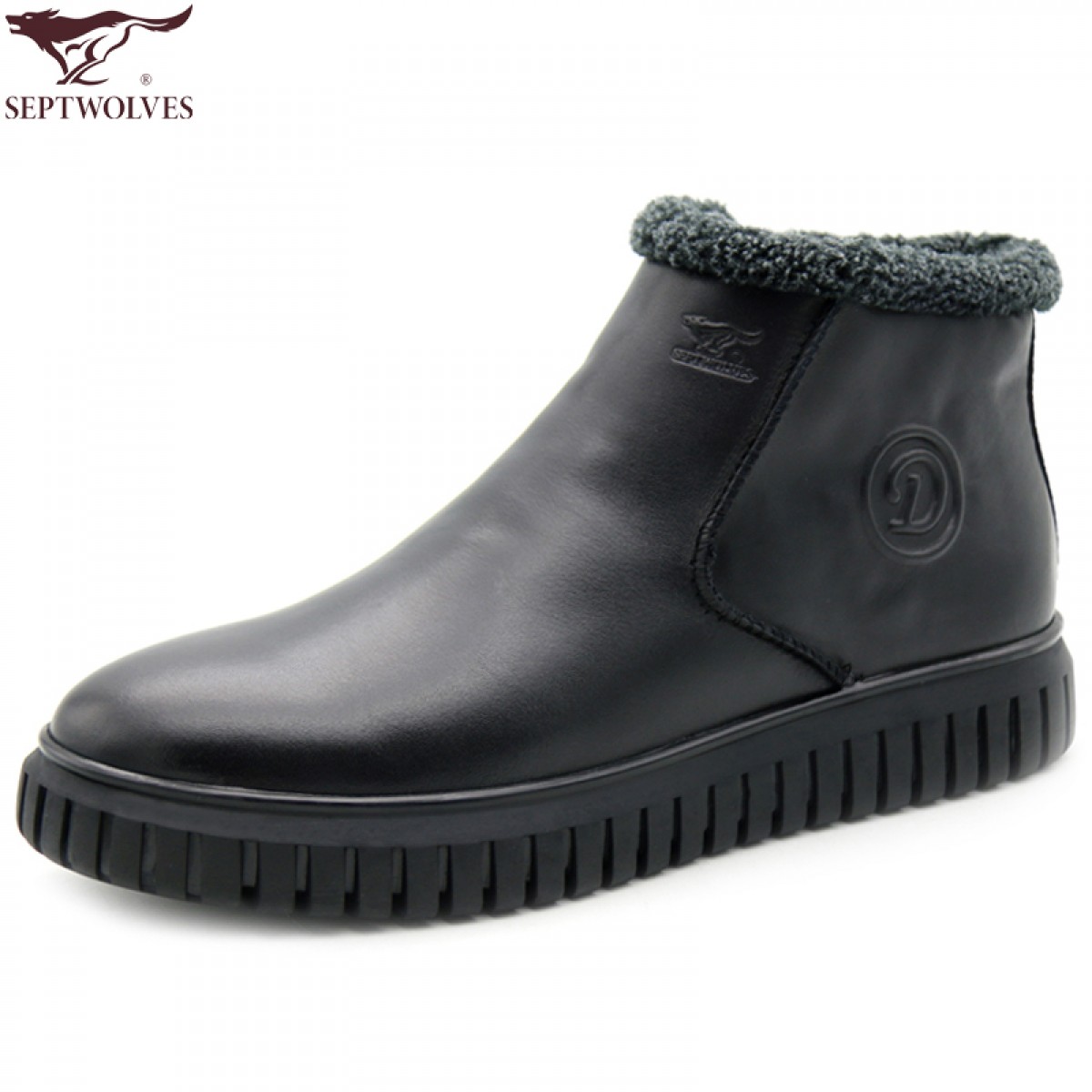 商品名称:七匹狼 男鞋新款冬季保暖头层牛皮毛绒内里拉链软底男士高帮鞋