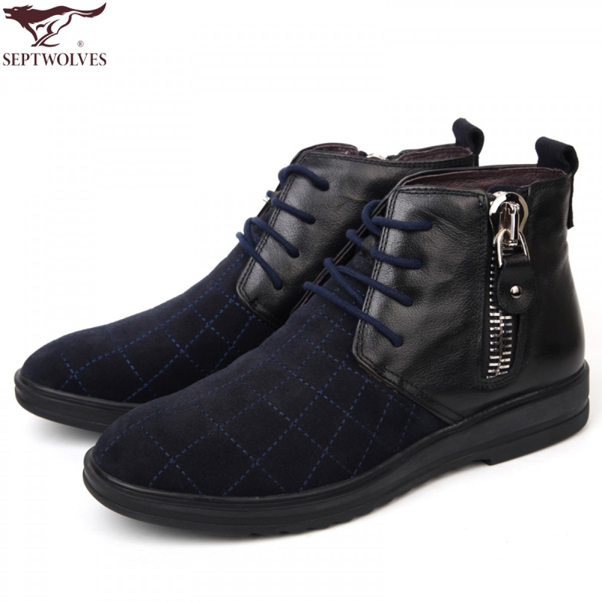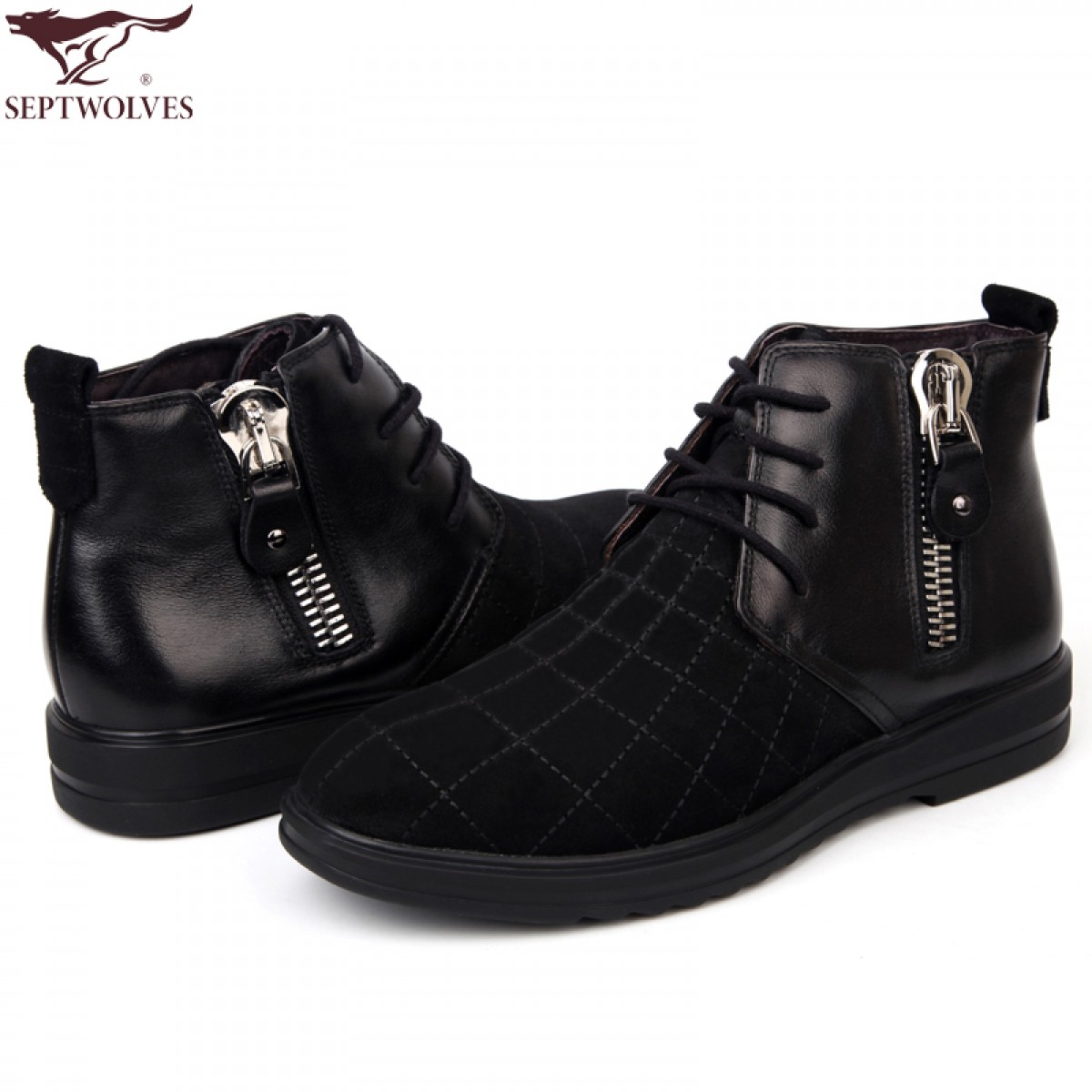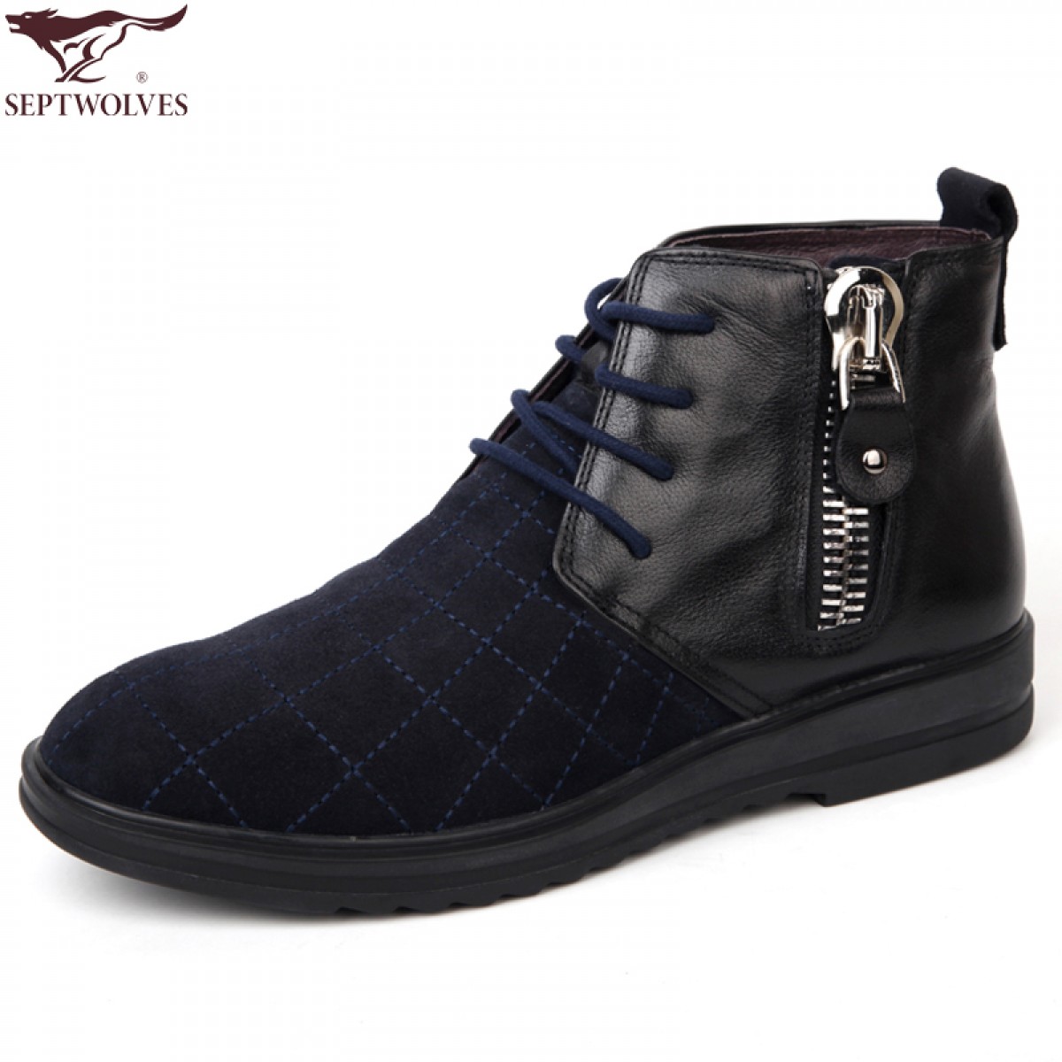 商品名称:七匹狼 棉鞋冬季磨砂头层牛皮拉链真皮高帮男士毛皮鞋子