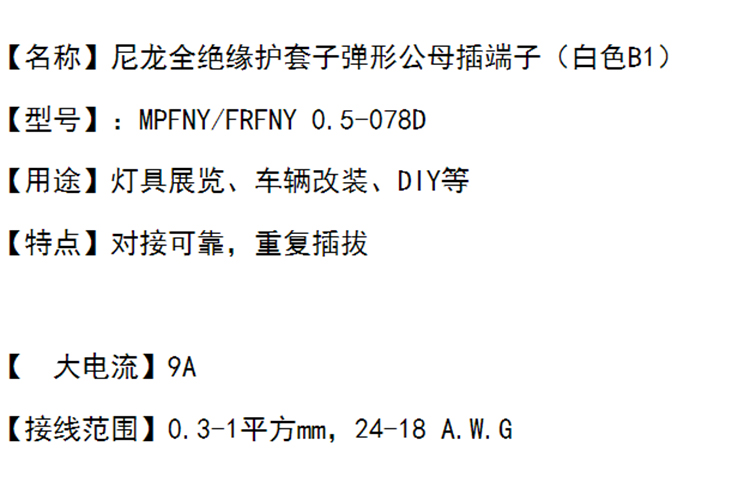 型号:白色尼龙子弹头型公母电线对接