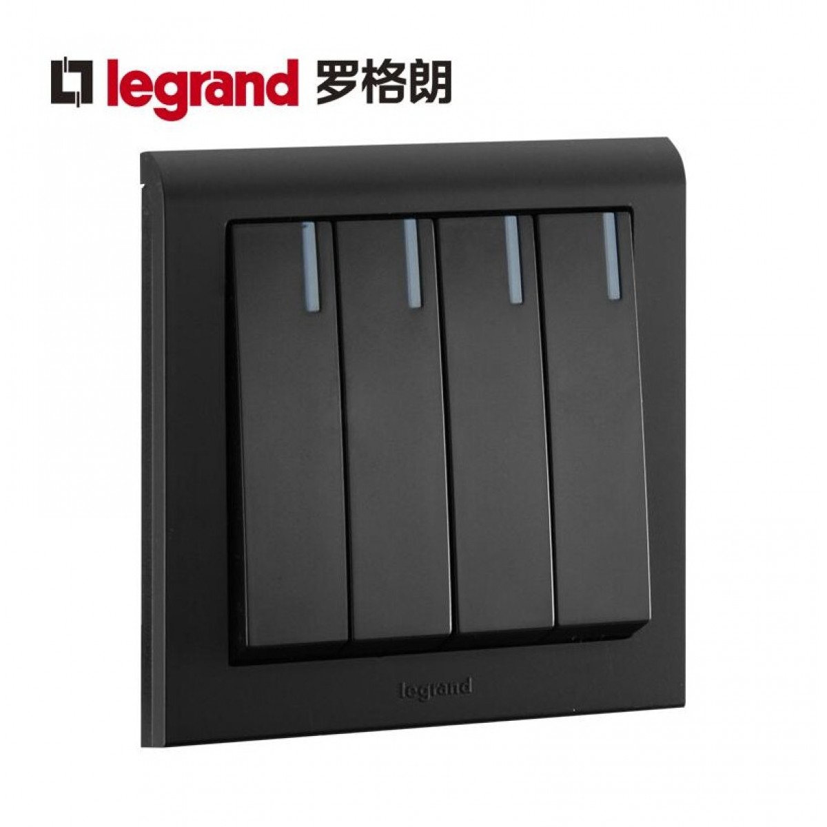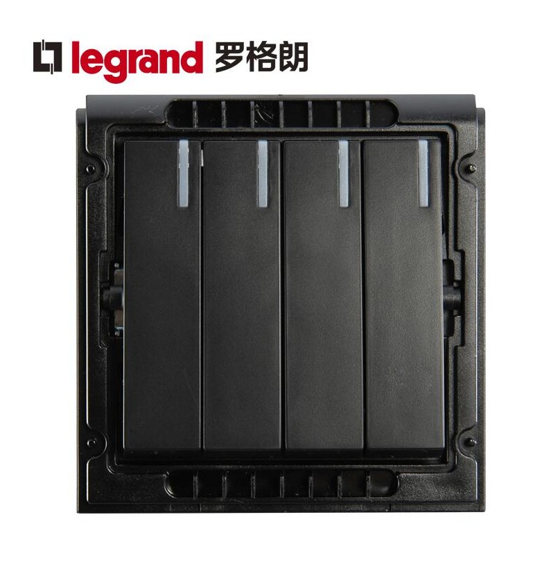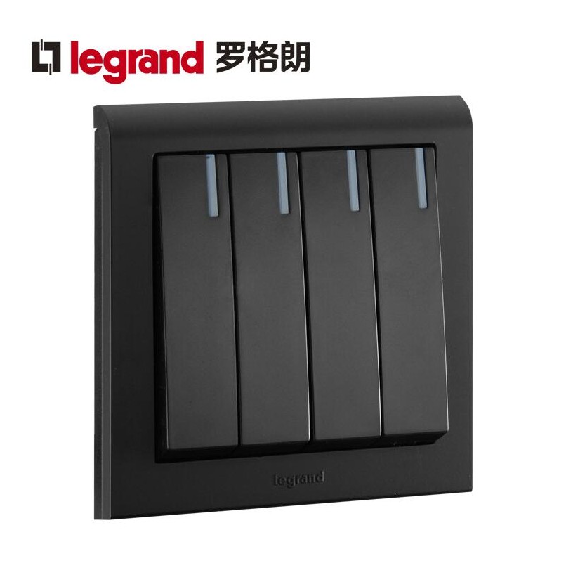 罗格朗 插座十大品牌K5黑色四位四开单控开关4开 四联单控面板