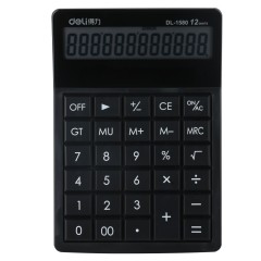得力 1580典雅型桌上型计算器 办公计算器 大面板太阳能黑色计算器