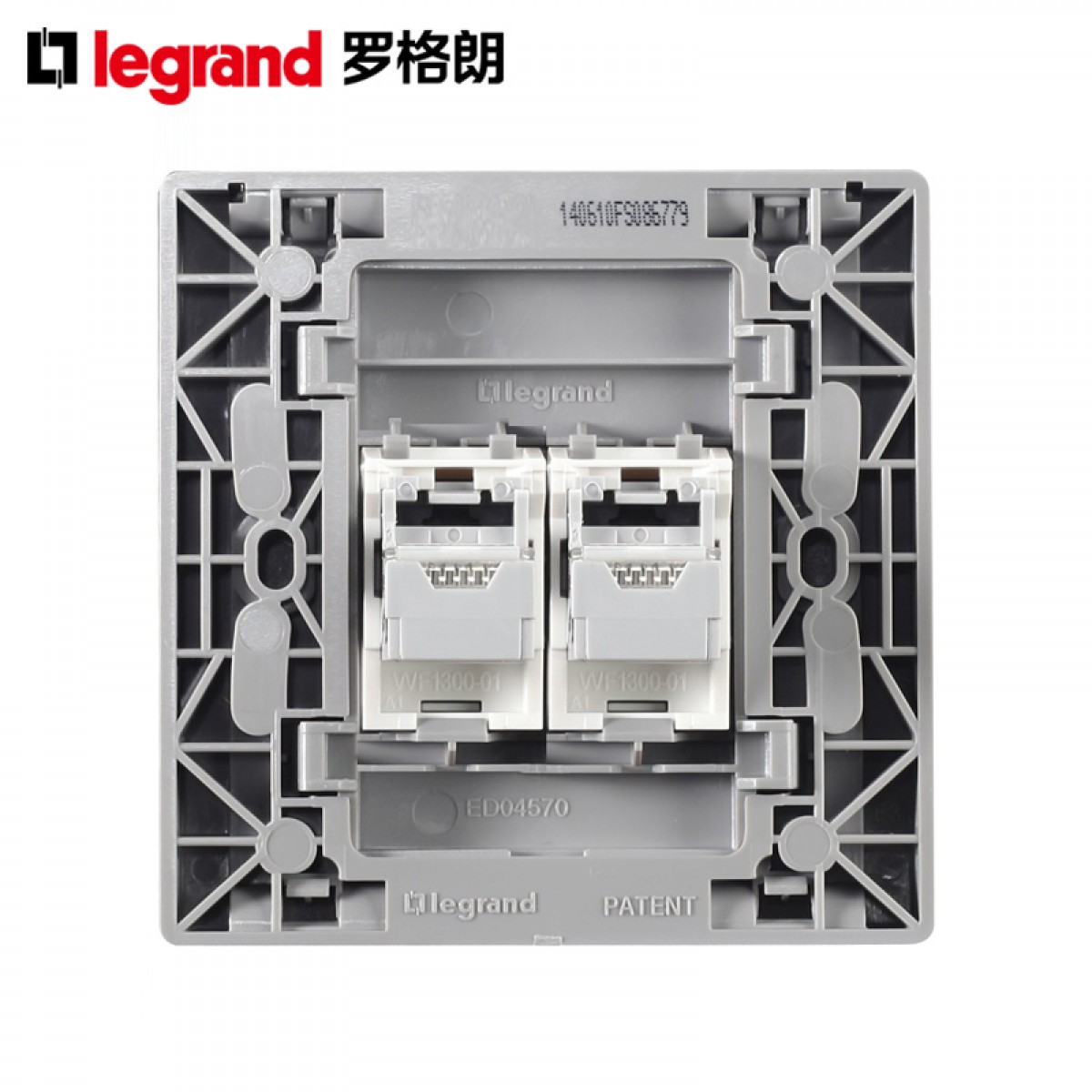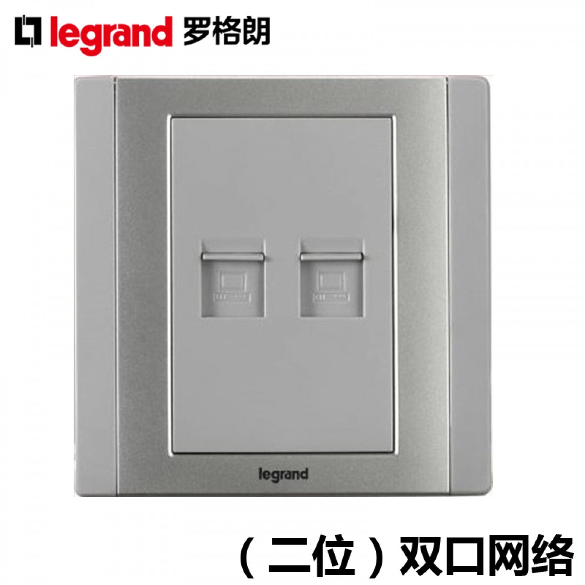 罗格朗 银色双口电脑灰色二位网口2孔网络网线插口面板插座宽带