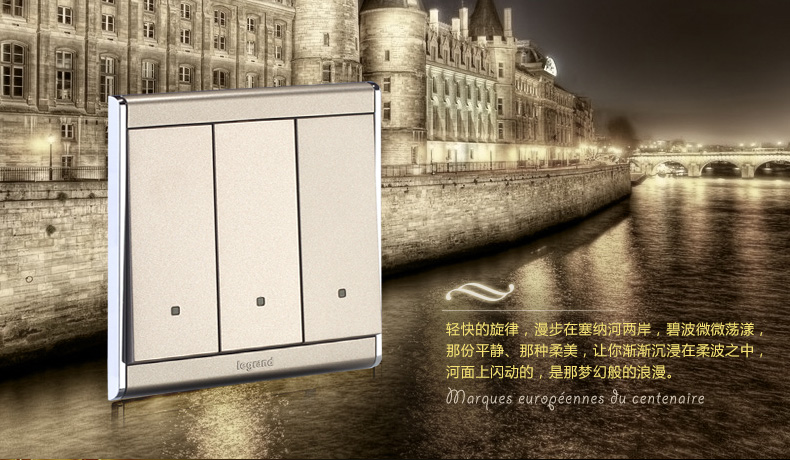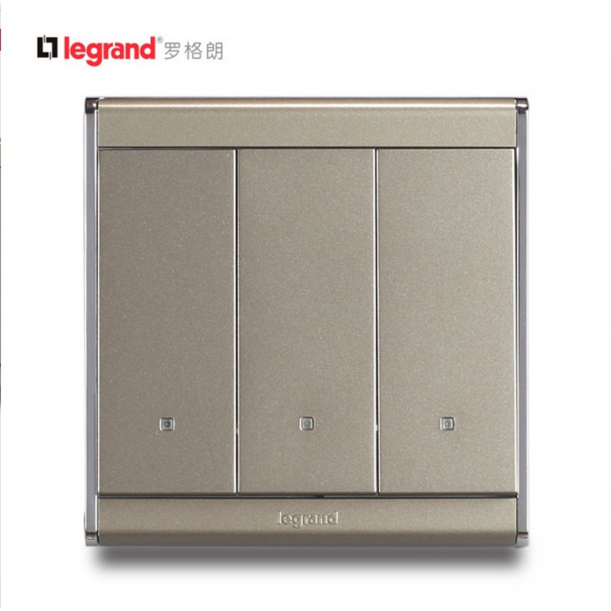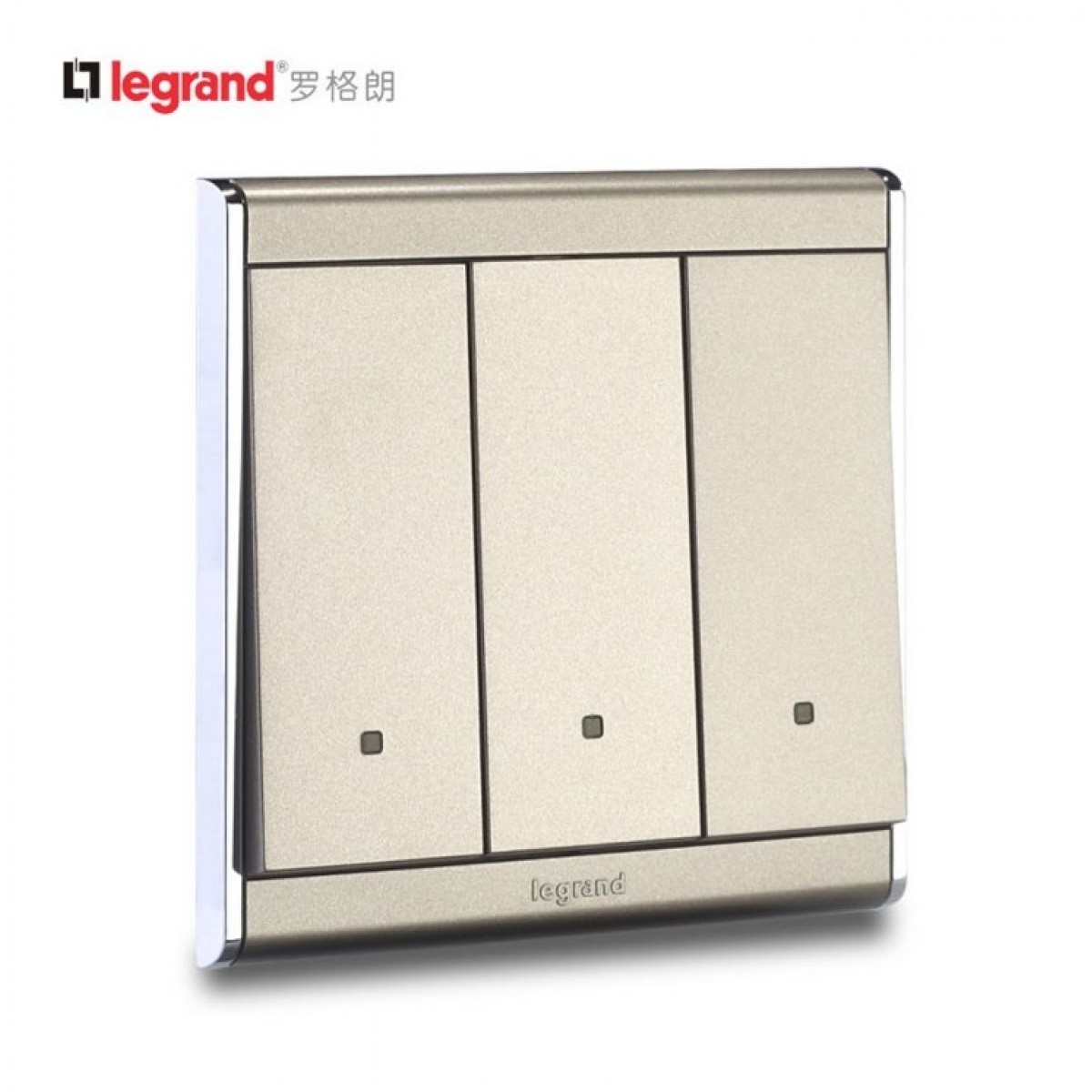 商品名称:罗格朗 开关插座尚韵缎沙金86型三位双控面板 三开双控荧光