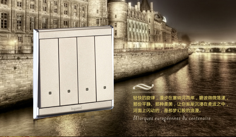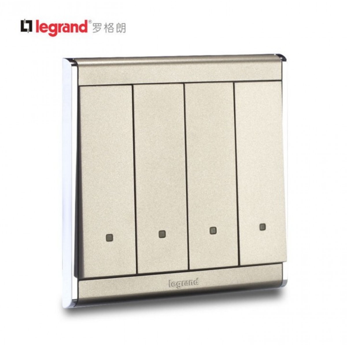 商品名称:罗格朗 开关插座尚韵缎沙金 四位单极面板 四开单控荧光 香槟金