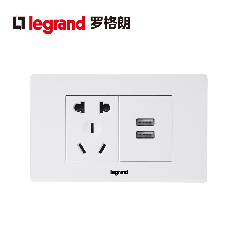 罗格朗 开关插座118型小盒二位 5孔USB 五孔USB插座面板