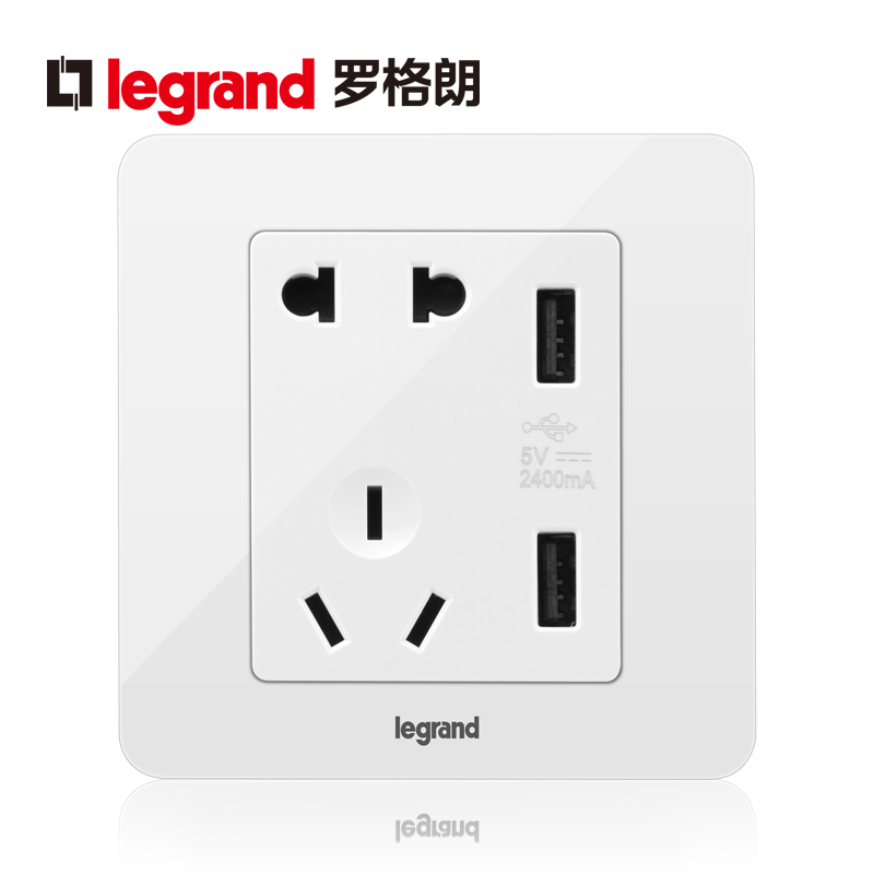罗格朗 逸典圆二三插五孔带USB开关插座面板86型充电双口家用