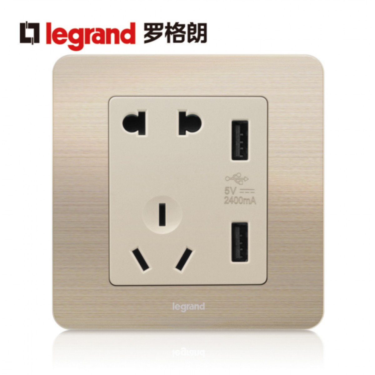 商品名称:罗格朗 逸典金色五孔带USB开关插座面板86型墙壁充电双口家用
