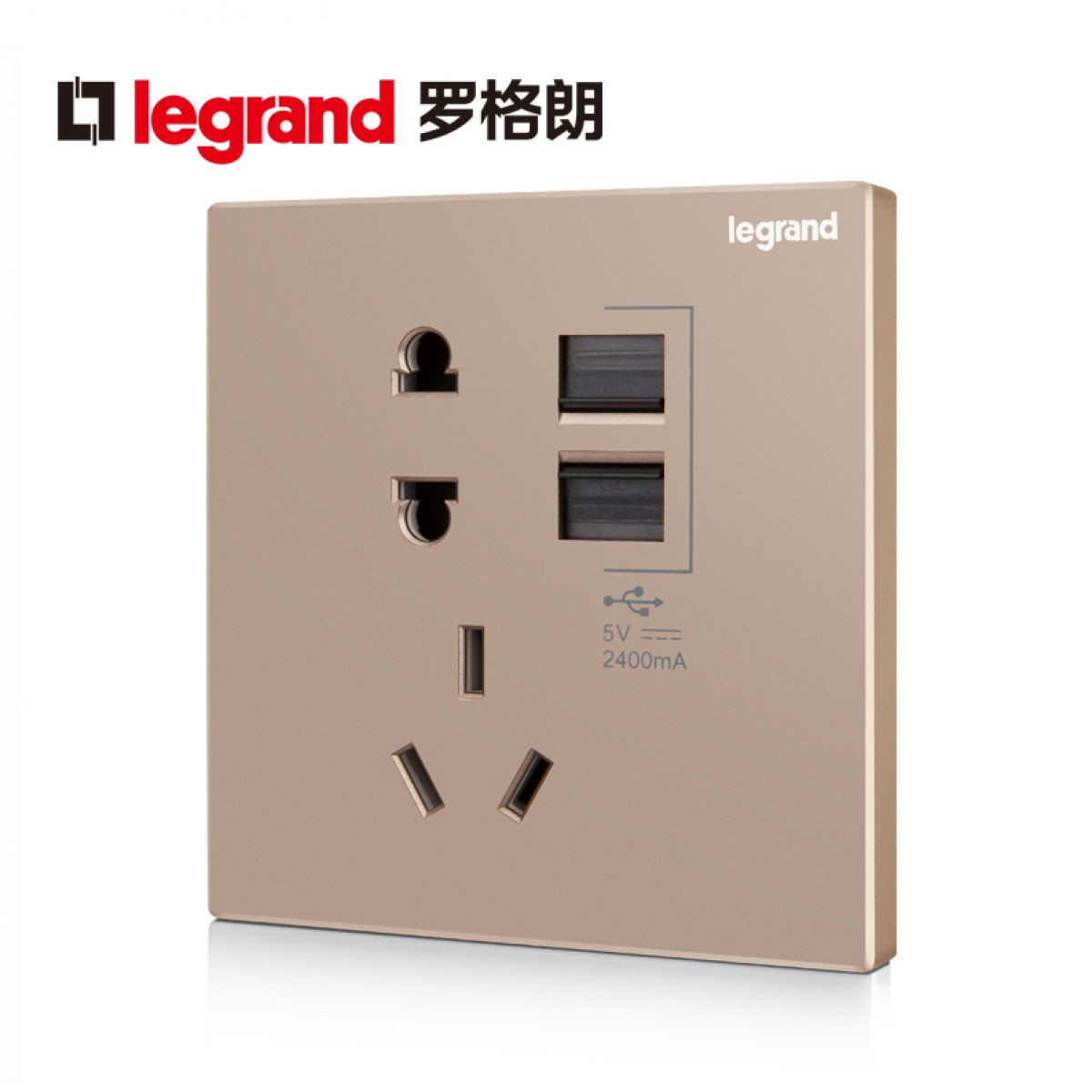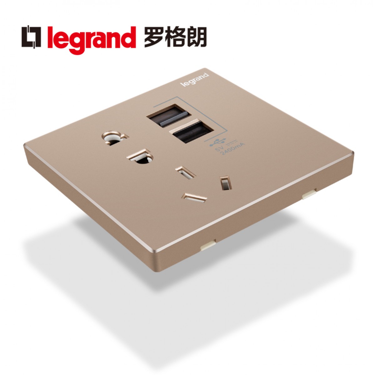 罗格朗 五孔带USB插座面板家用电源86型逸景开关玫瑰金暗装5孔