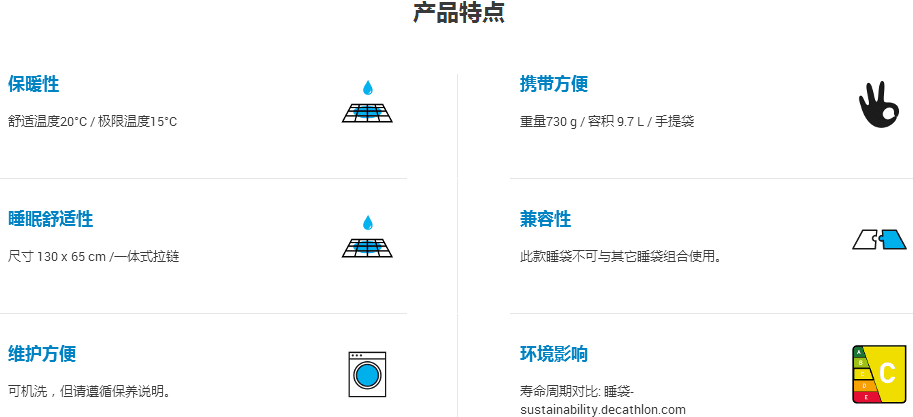 商品名称:迪卡侬 ARPENAZ 20° JUNIOR户外露营20度儿童信封式睡袋