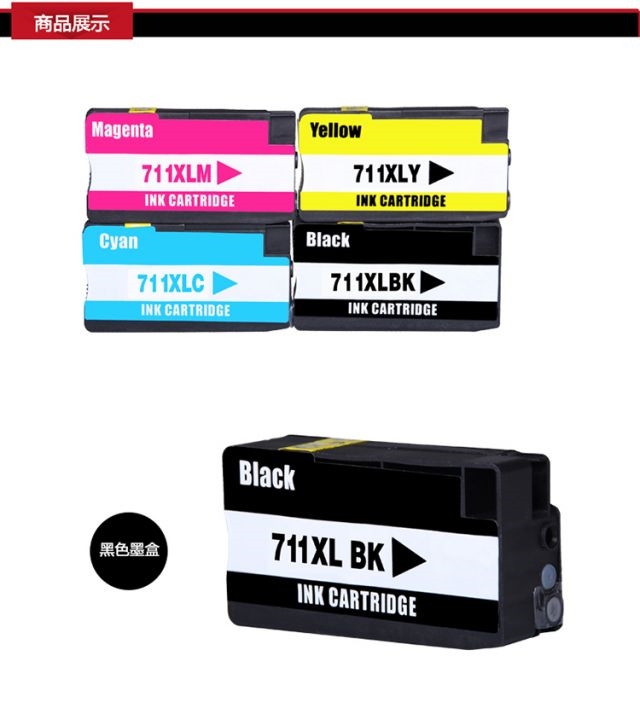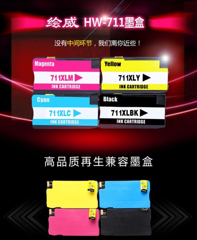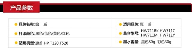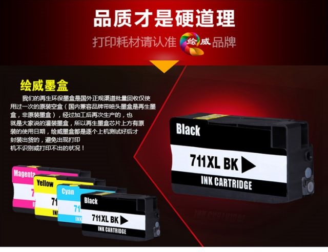 商品名称:绘威 711 四色墨盒套装 适用惠普HP711墨盒 T520墨盒 T120墨盒 连供墨盒 打印