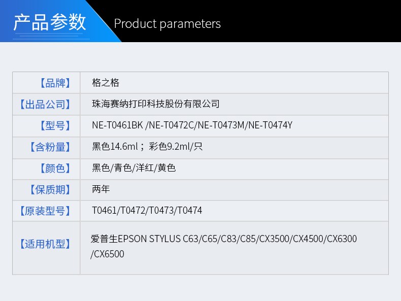 商品名称:格之格 T0461BK 适用EPSON C63 C65 C83 CX3500 CX4500 CX6300墨盒