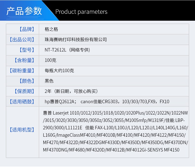 商品名称:格之格 T2612L 碳粉