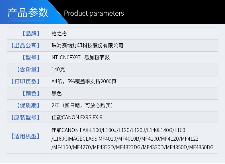 商品名称:格之格 CNFOFX9T fx9硒鼓 MF4010b FAX-L100墨盒 MF4120 4122 4150
