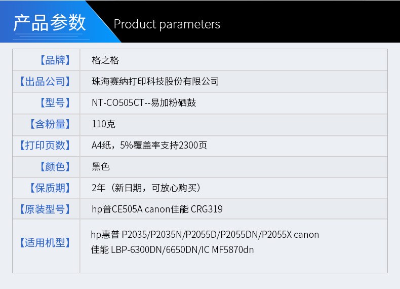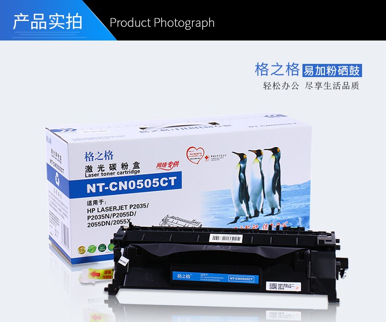 商品名称:格之格 CO505T 硒鼓适用CE505A易加粉通用P2055D惠普505AP2035D佳能LBP-6300墨盒