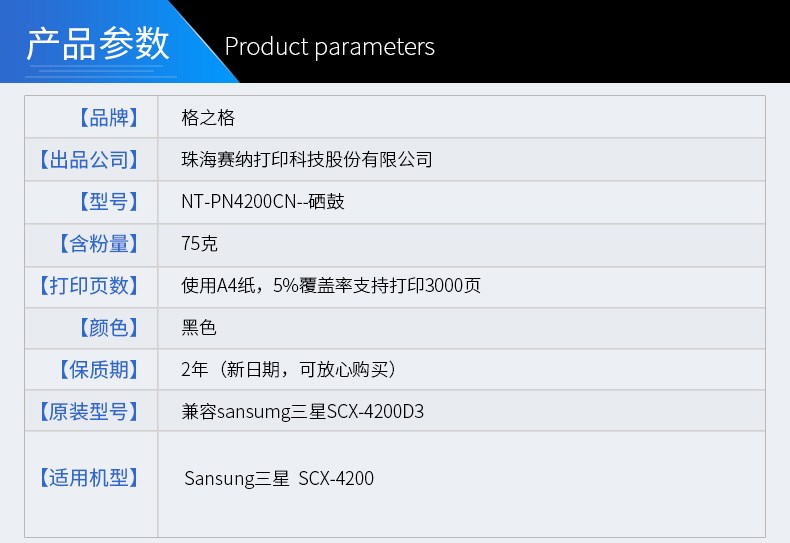 商品名称:格之格 4200CN 硒鼓适用三星4200D3硒鼓sansumg激光打印机硒鼓粉盒墨盒