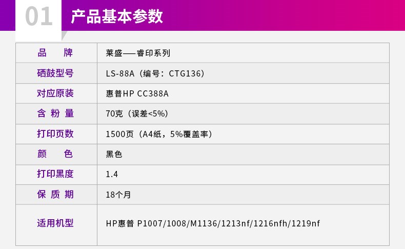 商品名称:莱盛 88A 通用惠普m126a硒鼓M128fp M126nw M128fn m226dn激光打印