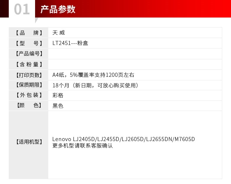 商品名称:天威 LT2451h粉盒 LJ2605 2655 2605D 7615dna