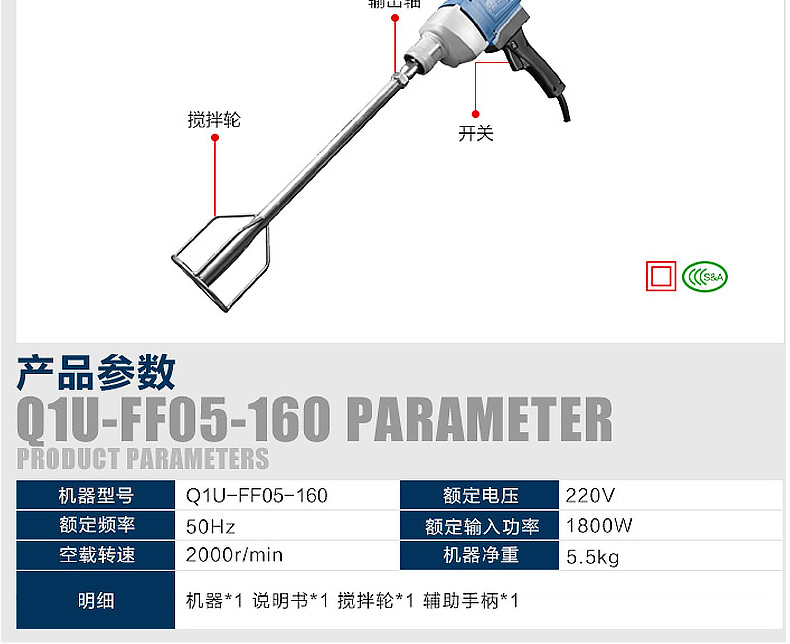 商品名称:东成 打灰机腻子粉搅拌机电动工具工业级大功率东城水泥涂料搅拌器