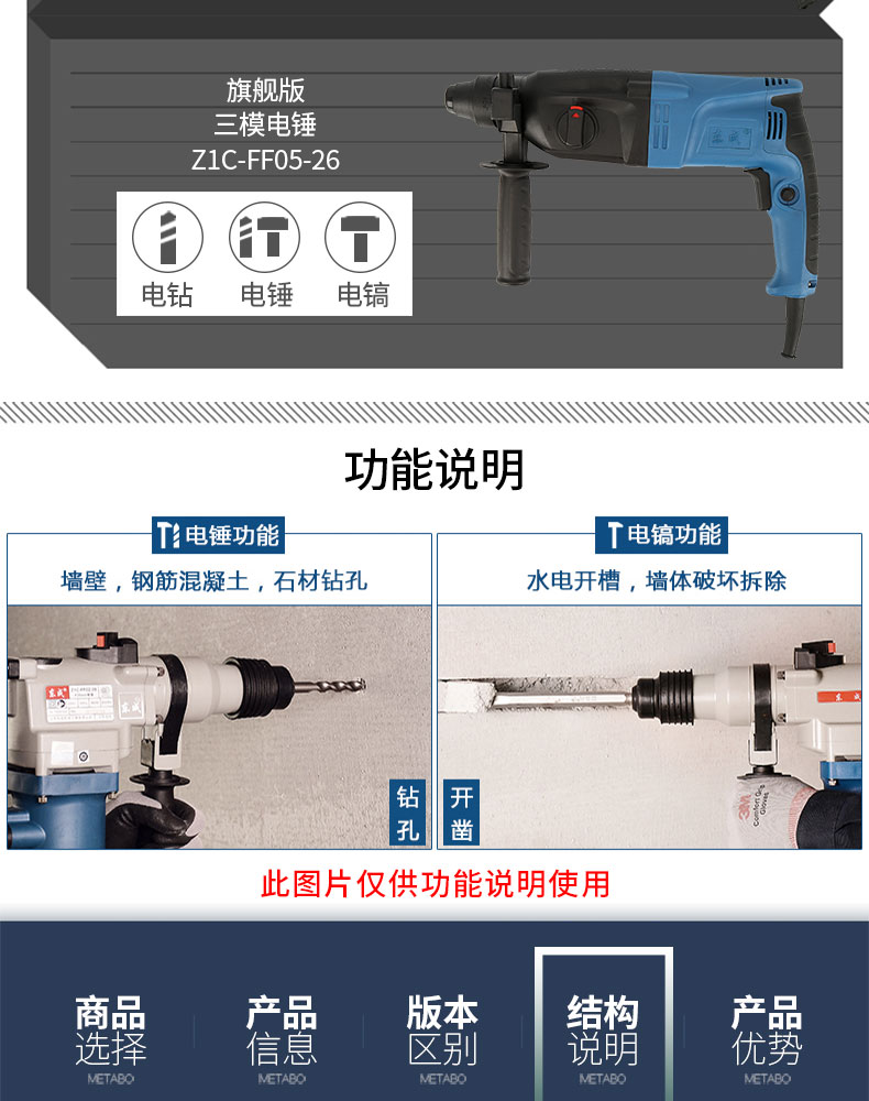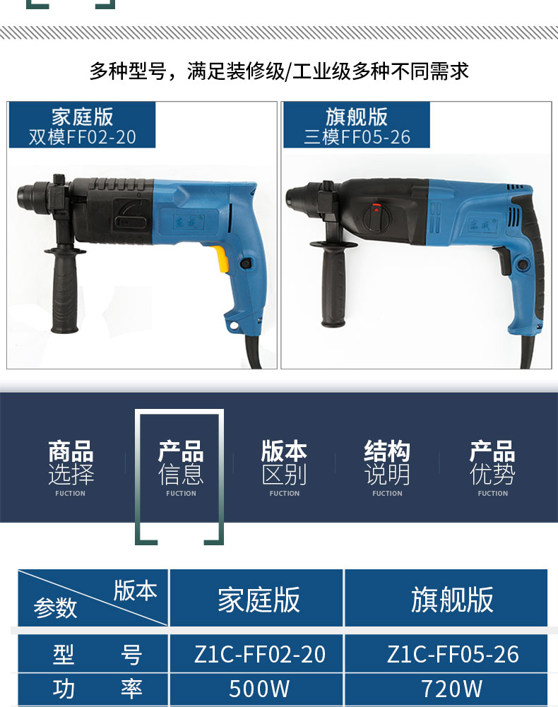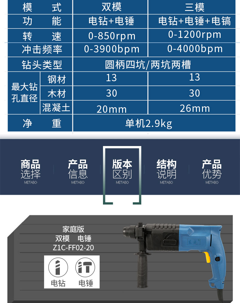 商品名称:东成 轻型电锤冲击钻电钻三用 多功能工业级 大功率混凝土电镐两用 Z1C-FF02-20