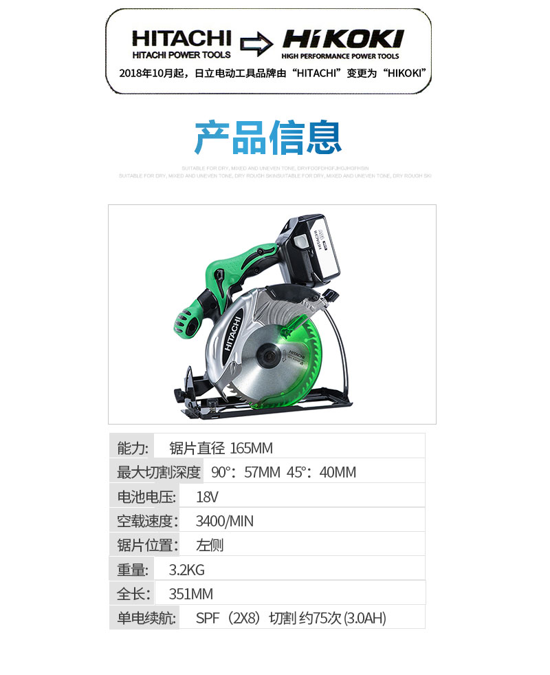 商品名称:日立 电圆锯充电式锂电6寸木工手提圆锯多功能电锯 C18DSL