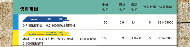 商品名称:Metabo/麦太保 PowerMaxx ASE锂电充电式马刀锯 木工金工锯条 631454000