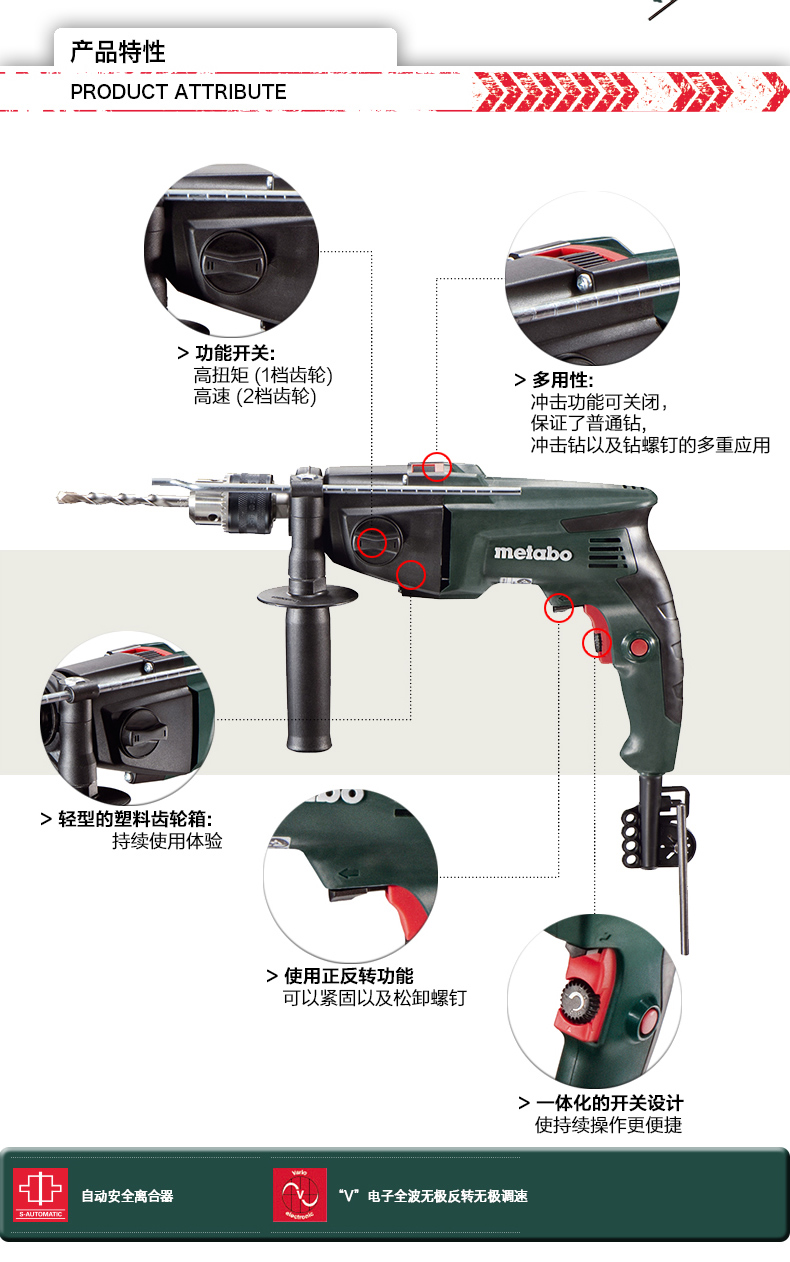 商品名称:Metabo/麦太保 工业级冲击钻电钻 家用带调速正反转 SBE760