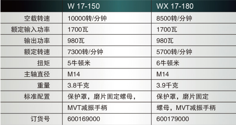 商品名称:Metabo/麦太保 角磨机 打磨抛光机 W17-150 W17-180
