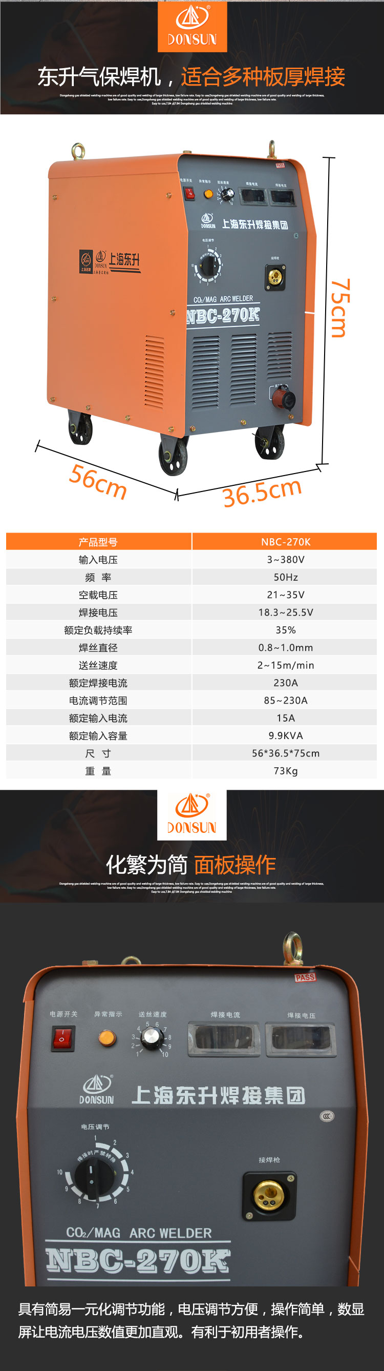 商品名称:上海东升 经济型高效节能一体式二氧化碳气体保护焊机 NBC-270K